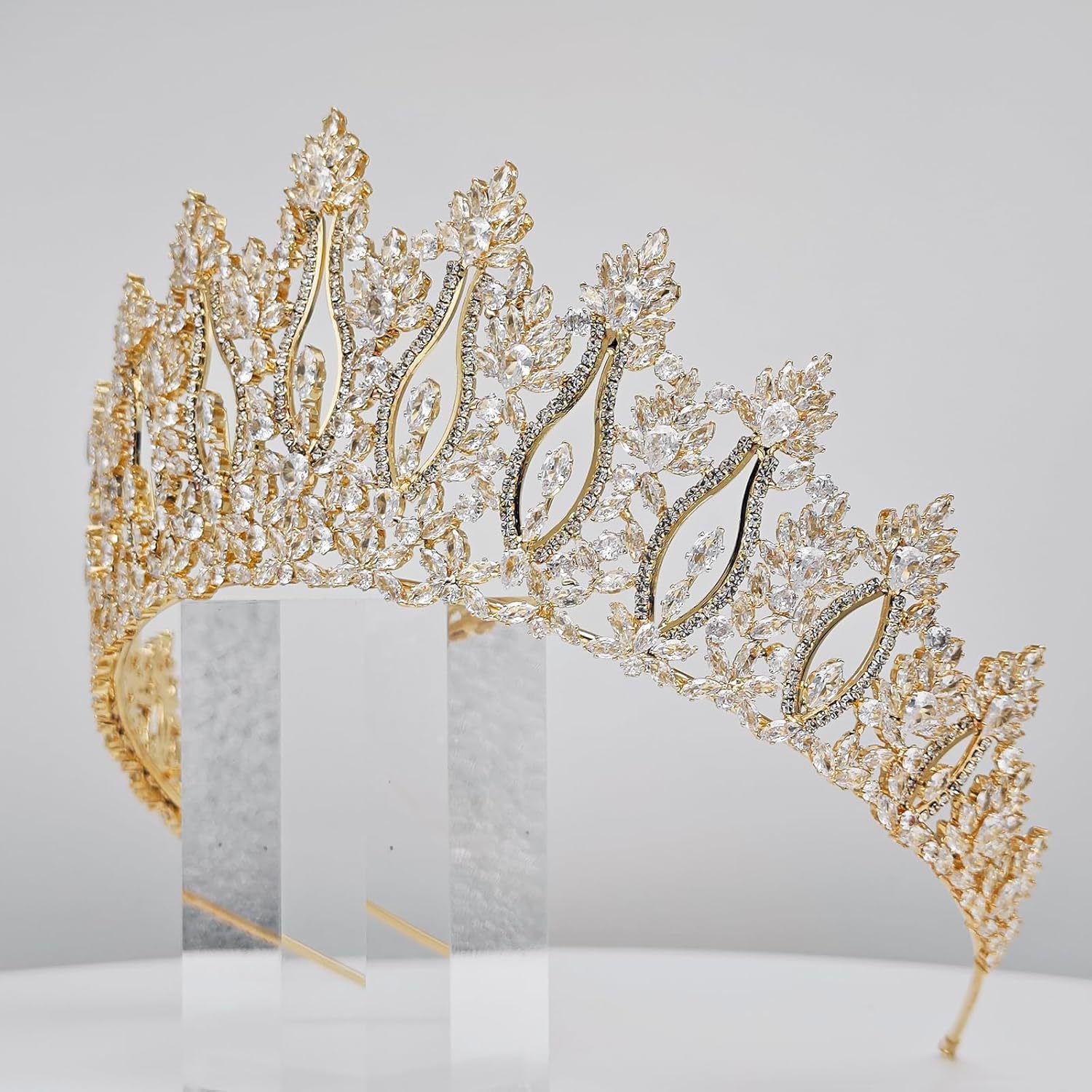 Luxury Wedding Tiaras for Bride Cubic Zirconia Big Tall Crown Quinceanera Crystal Headband for Women CZ Pageant Birthday Prom Party Headpiece Bridal Hair Accessories Gold