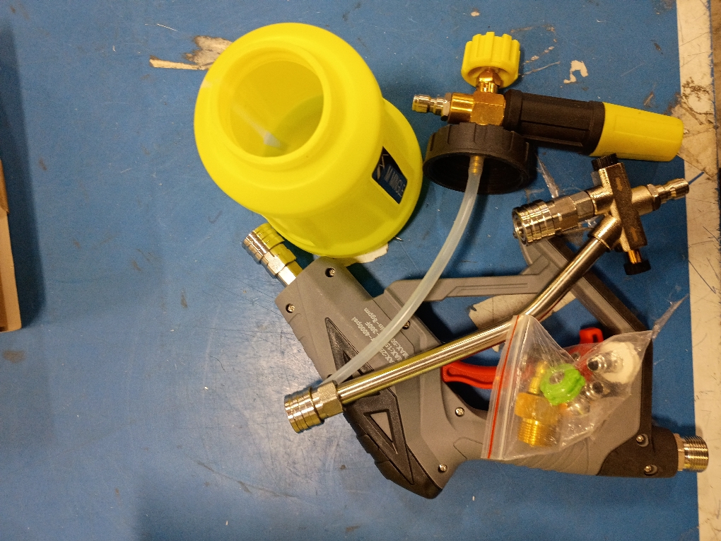 Professional Pressure Washer Foam Gun Kit: Includes pressure washer gun, dual connector foam cannon, dual lance, 5 nozzles, and M22-15mm Connector. Ideal for various cleaning tasks like vehicle and floor washing, house exteriors. One kit satisfies all your cleaning requirements.