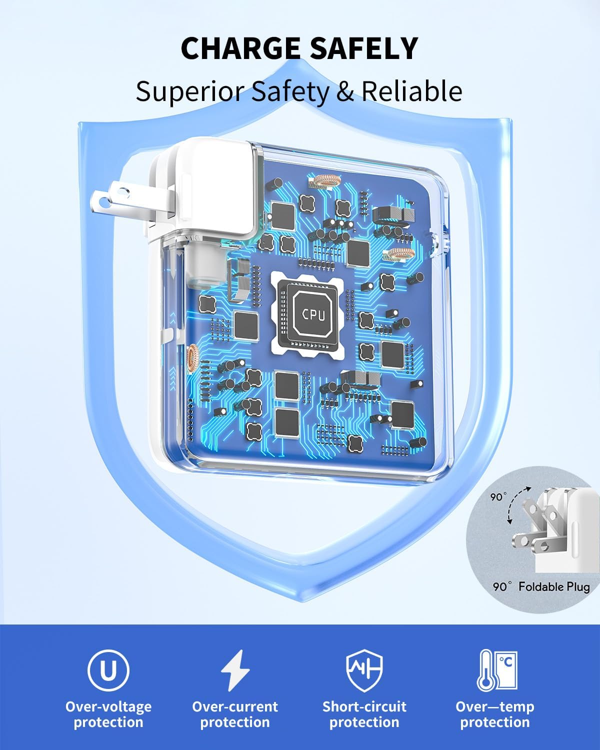 140W PD Fast Charging: Whether at home, in the office, or outdoors, usb c mag 3 cable ensures that you'll always have the power you need. 140W PD fast charging saves your time in charging. An amber light lets you know that your notebook is charging, while a green light tells you that you have a full charge.