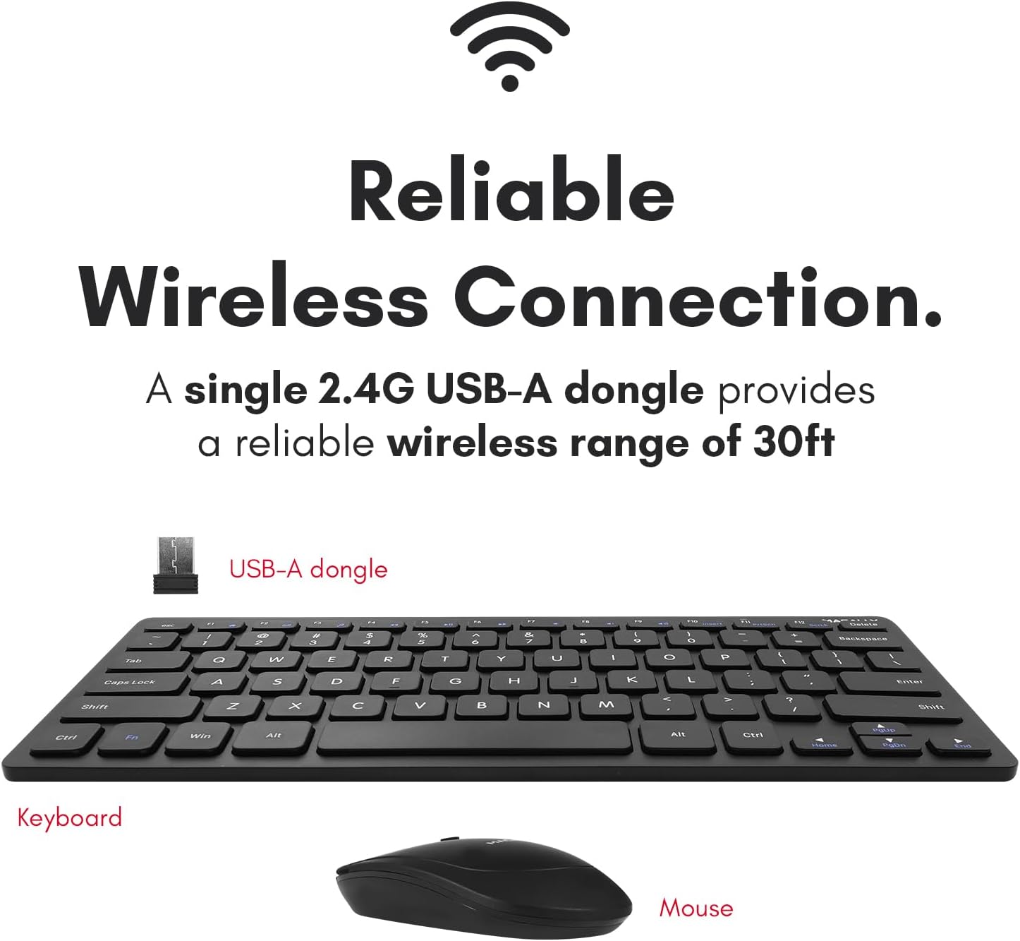 Dependable Wireless Technology: Enjoy a strong wireless connection with our cordless mouse and keyboard combo. It is built with 2.4Ghz RF tech that offers a 30ft range. Simply plug the single USB dongle in and begin.