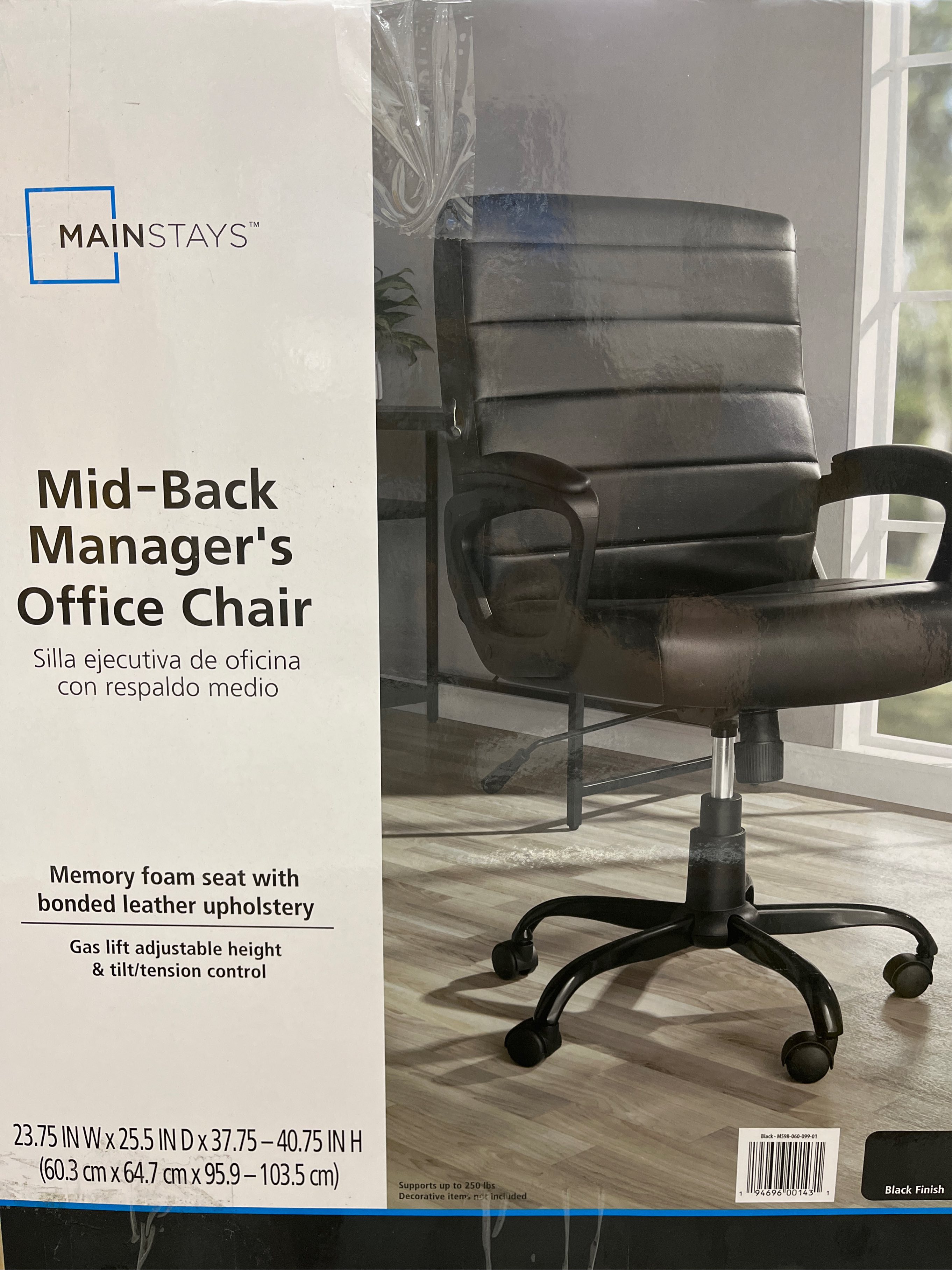 MAINSTAYS BONDED LEATHER MID BACK MANAGERS OFFICE CHAIR, BLACK *DISTRESSED PKG