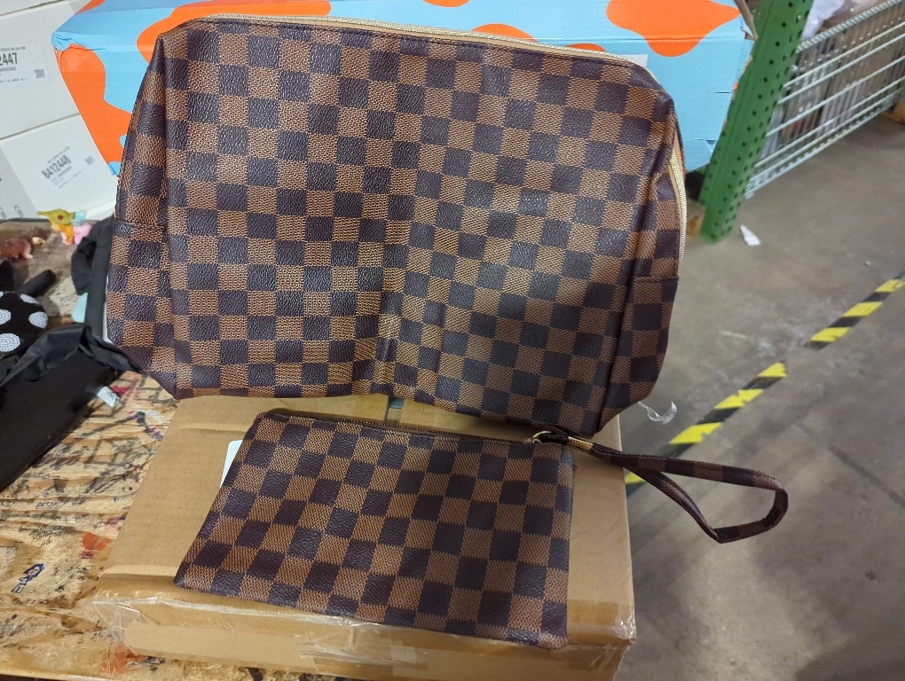 3. Makeup Bag, Cosmetic Bag, Portable Leather Large Checkered Makeup Bag, 2 Pack Large Capacity Travel Cosmetic Bag for Women, Lightweight Design and Waterproof Toiletries Bag Christmas Gifts