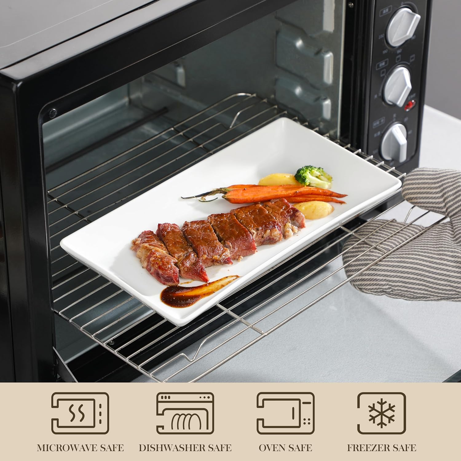 Sturdy and Stable: Our 12-inch serving tray stand comes with 3 layer sturdy metal stand with three of white rectangular ceramics trays, providing ample space to elegantly present your food and desserts, The black metal rack is robust, and stable,foldable, allowing to flexibly adjust angles and convenient access to food. Our tiered platter stands firm while holding your favorite delicacies. Whether it’s delicate pastries or savory bites, rest assured the serving stand will make your display secure and eye-catching.