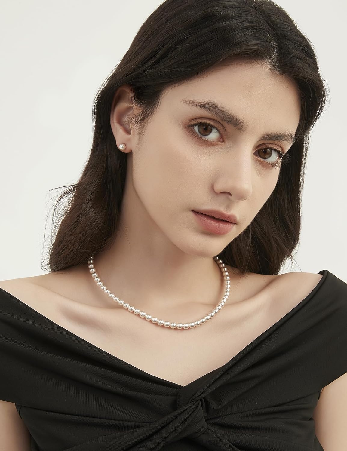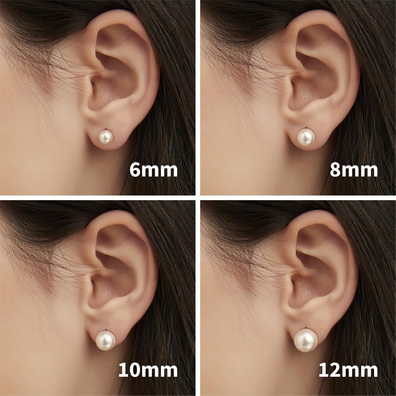 Perfect Size: 6mm/8mm/10mm/12mm handpicked artificial pearl, pierced earring design with comfort disc backs, mini and simple, fit most sized ear lobes