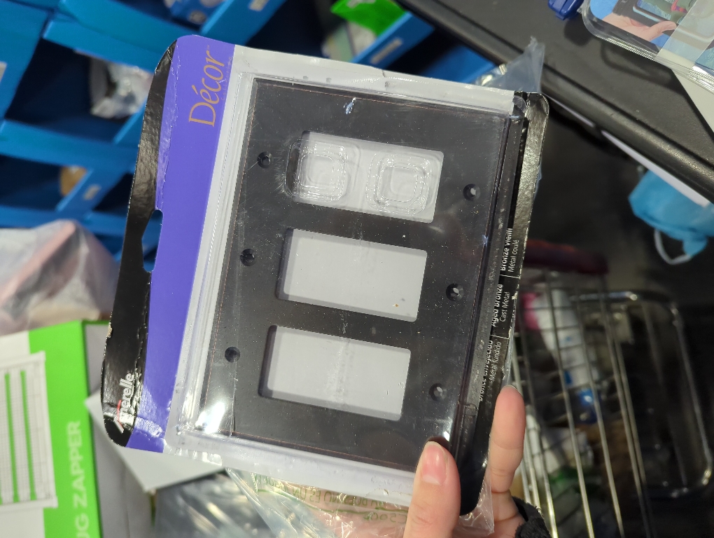 Manufactured by Amerelle, the leader in decorative wall plates and hardware. Made from durable stamped metal, this stylish wall plate does more than just cover electrical boxes, adding a simple elegance to your decor. Decorating with wall plates is an easy and inexpensive way to make an immediate impact in your home. They provide a charming upgrade to your standard plastic ones by adding a refined, decorative accent to any room in your house.. Color Family: Bronze. Color/Finish: Aged Bronze. Electrical Product Type: Wall Plate. Features: No Additional Features. Included: Screws. Number of Gangs: 3-Gang. Package Quantity: 1. Returnable: 90-Day. Shape: Rectangular. Wall Plate Configuration: Decorator/Rocker. Wall Plate Deco Style: Traditional/Classic. Wall Plate Material: Metal. Wallplate Collection: Manhattan. Certifications and Listings: cUL Listed. Product Depth (in.): 7.875 in. Product Height (in.): 7.5 in. Product Width (in.): 0.25 in. Number of Gangs: 3-Gang. Wall Plate Material: Metal. Package Quantity: 1. Shape: Rectangular