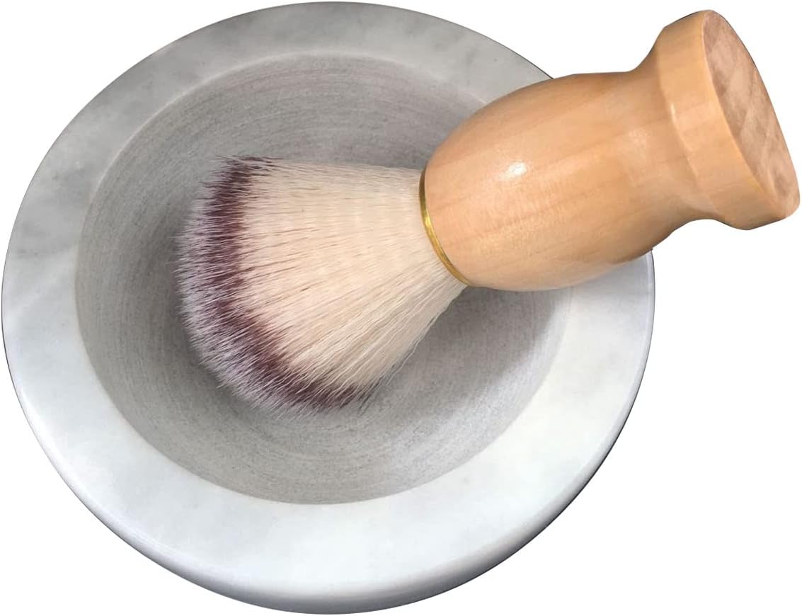 Natural Marble:Marble shaving bowl is made from 100% marble,Handmade by artisans,The color and texture of each bowl is different, unique of natural。