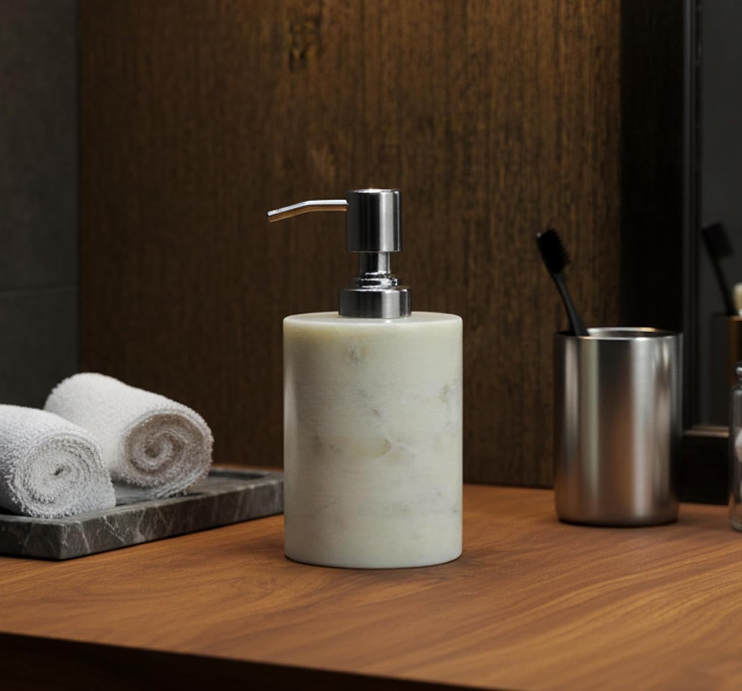 Marble Soap/Lotion Dispenser - Stone Bathroom Accessories Set Marble Bath Set - White