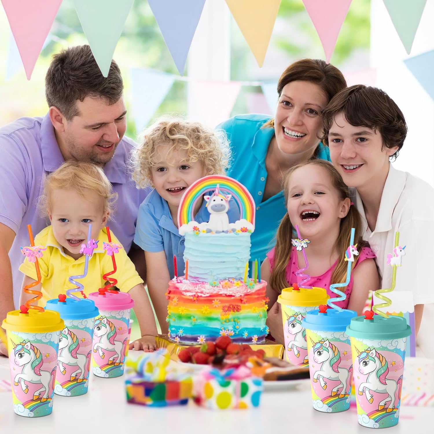3. Maxcheck 36 Sets Unicorn Party Favors Goodie Cups with Lids and Straws for Birthday Decorations 36pcs 16oz Plastic Cups Reusable Plastic Straws for Birthday Party (Unicorn)