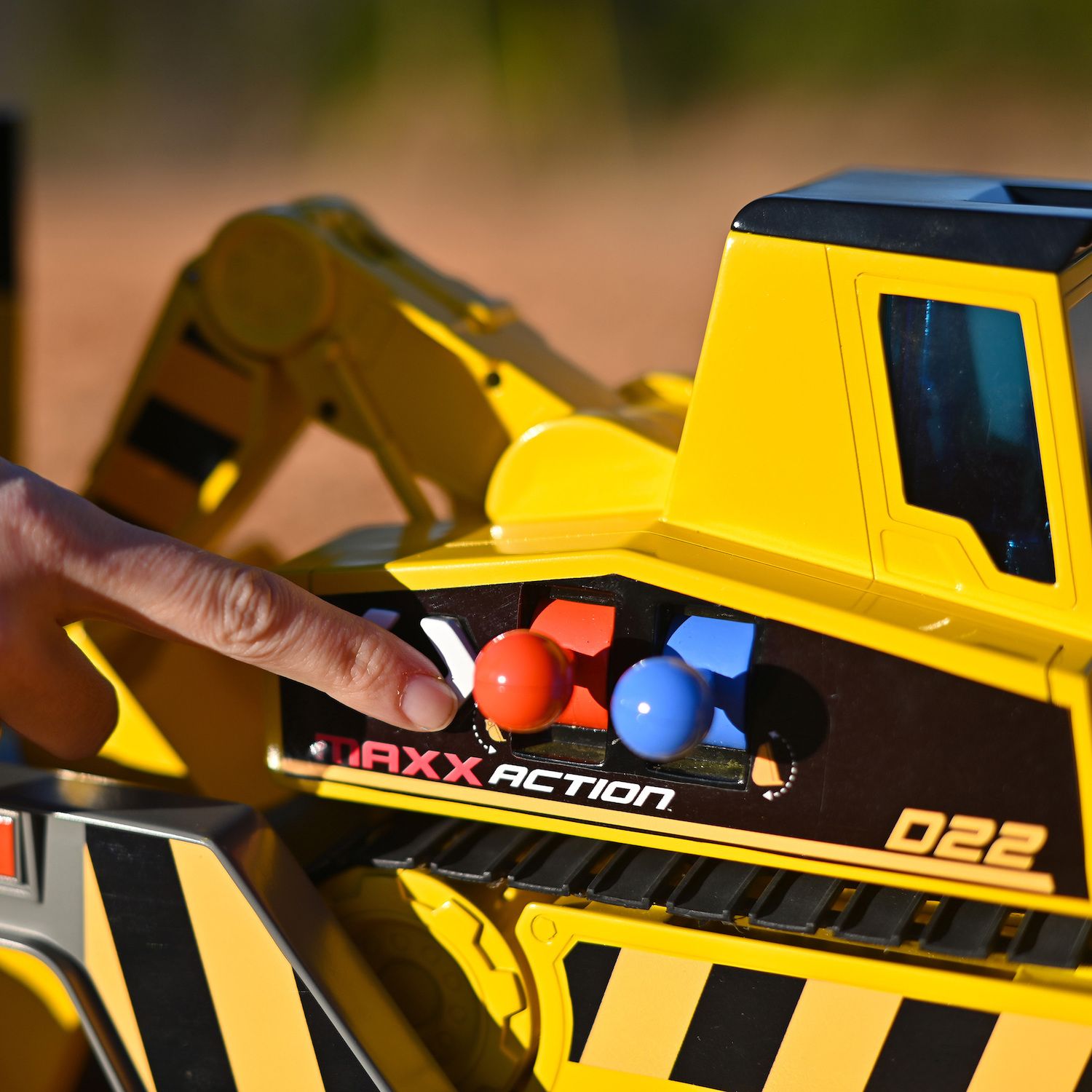 Unload, dig and drive with the Maxx Action 2-N-1 Mega Mover! This construction vehicle is action packed with two vehicles in one for twice the fun. PRODUCT FEATURES Use the long hauler to move the backhoe loader across the construction site, then drop the gate and get to work with the working Activate the electronic sounds and LED lights with the push of a button. Push the buttons on the backhoe loader to activate the motorized engine and move forward or backward to a new destination. Use the joysticks to control the front end loader bucket and excavator arm. PRODUCT DETAILS Imported Age: 3 years & up Plastic 23.50" x 8" x 10.75"