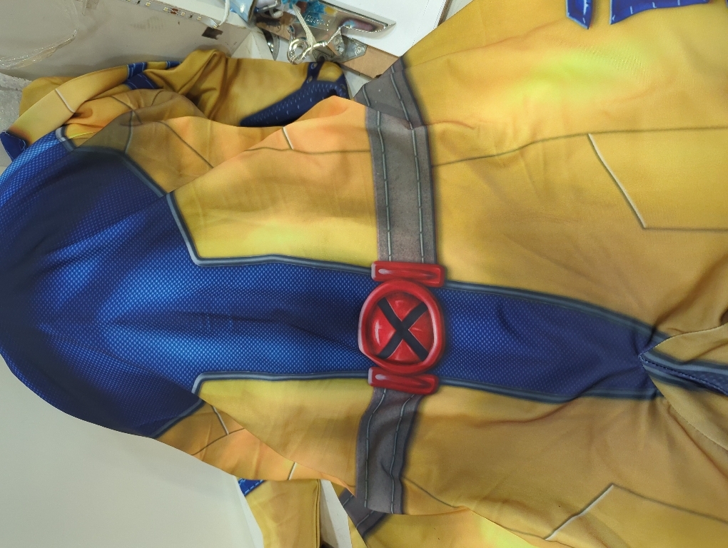 Package: Two-piece Jean Grey costume set includes a full-body jumpsuit and matching mask, featuring iconic blue and yellow color scheme with detailed panel designs