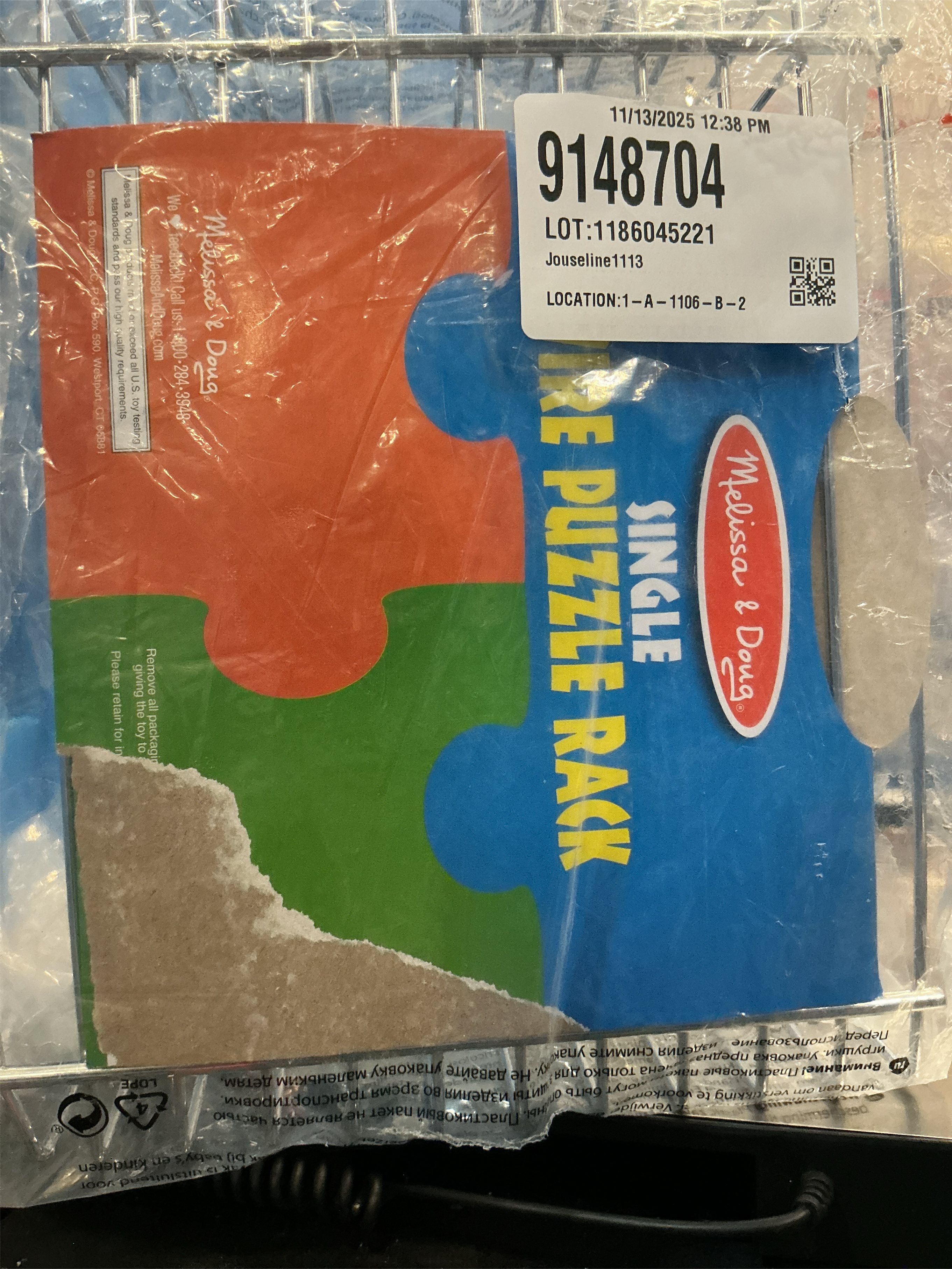 Rack holds Melissa & Doug Peg Puzzles and other 8.5 x 11.5 x 0.5-inch puzzles; rack does not hold Melissa & Doug Jumbo Peg Puzzles, Sound Puzzles, Latches Board or other large activity boards