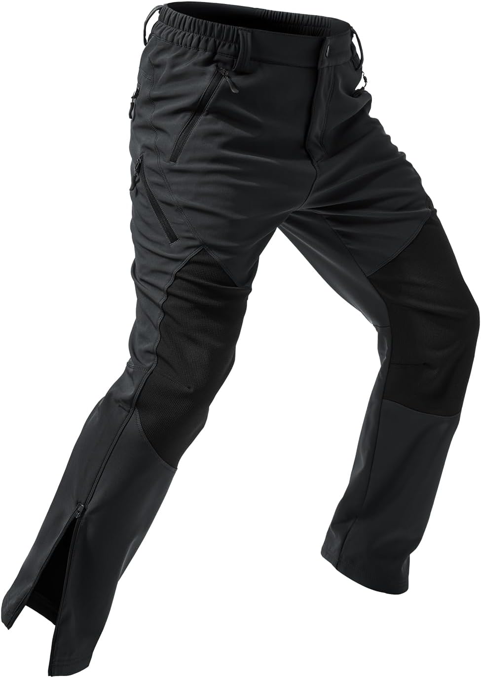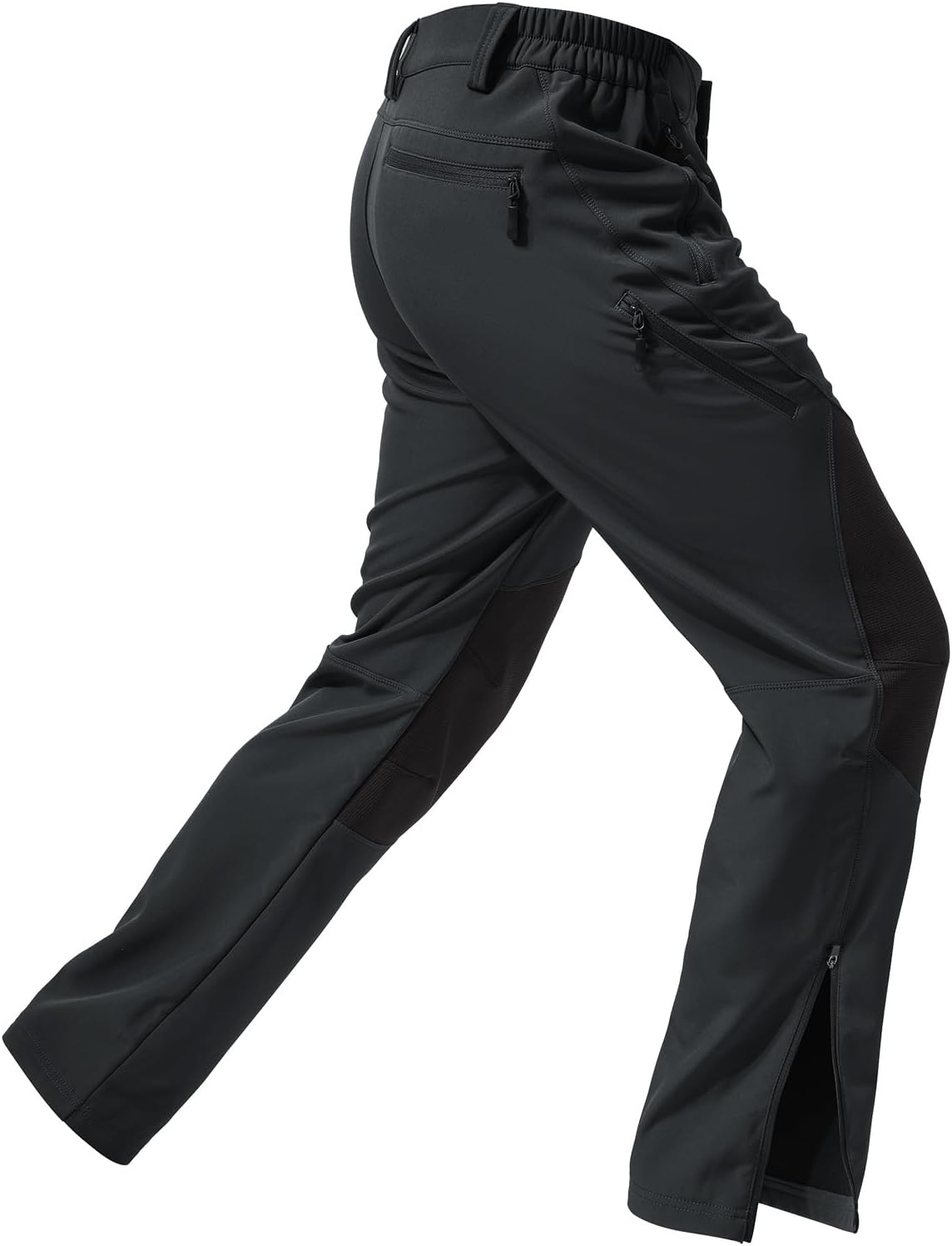 Mens-Snow-Ski-Pants-Fleece-Lined-Pants Waterproof Winter Softshell Insulated Zipper Bottom Leg for Hiking Outdoor