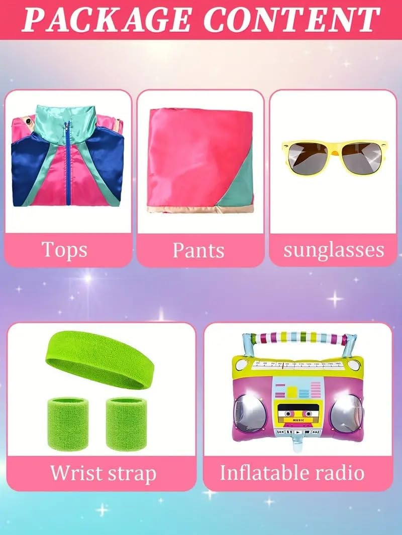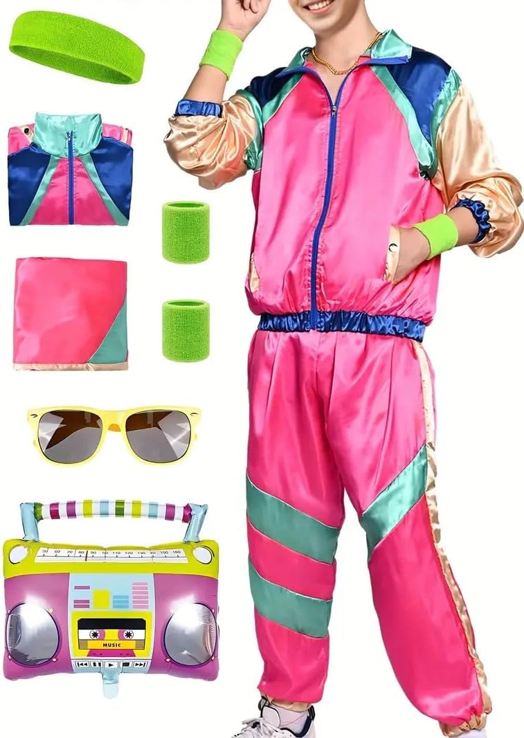 【Comfort 】: Mens Womens Retro 80s Party Wear Tracksuit With Accessory Adults Fancy Clubwear Tracksuit A Cool Dress Costume For Any 80's Or Party.This Retro 80's Hippie Costumes Is Perfect For Halloween Dress Up Party, Disco Costume Party, Festival, Carnival Party Costume, Etc. The Retro Tracksuit Costume Brings You Back To 80s AMSer Dressing Them Up, And You Will Make A Hit At Party. Perfect To Pair With A Retro Yellow Sunglasses To Add More .