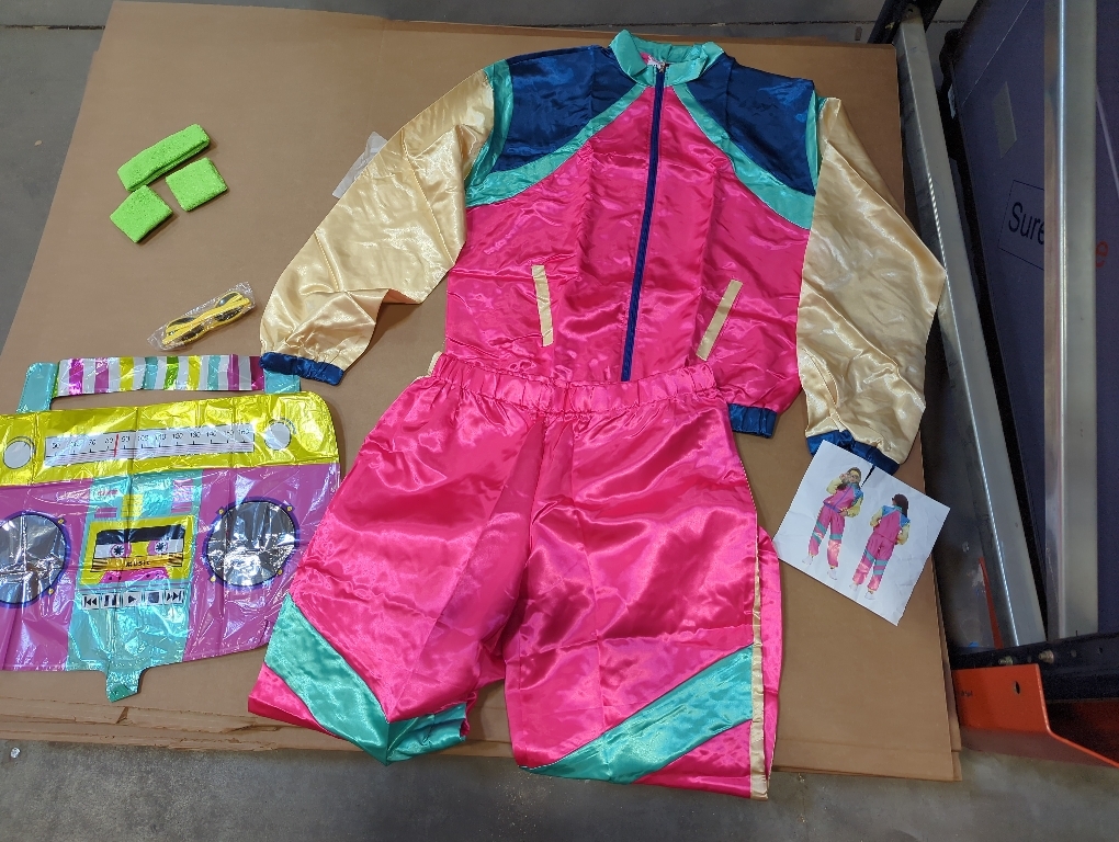 Mens Womens Retro 80s Pink And Blue Tracksuit With Accessory Unisex Top Bottom Costume Party