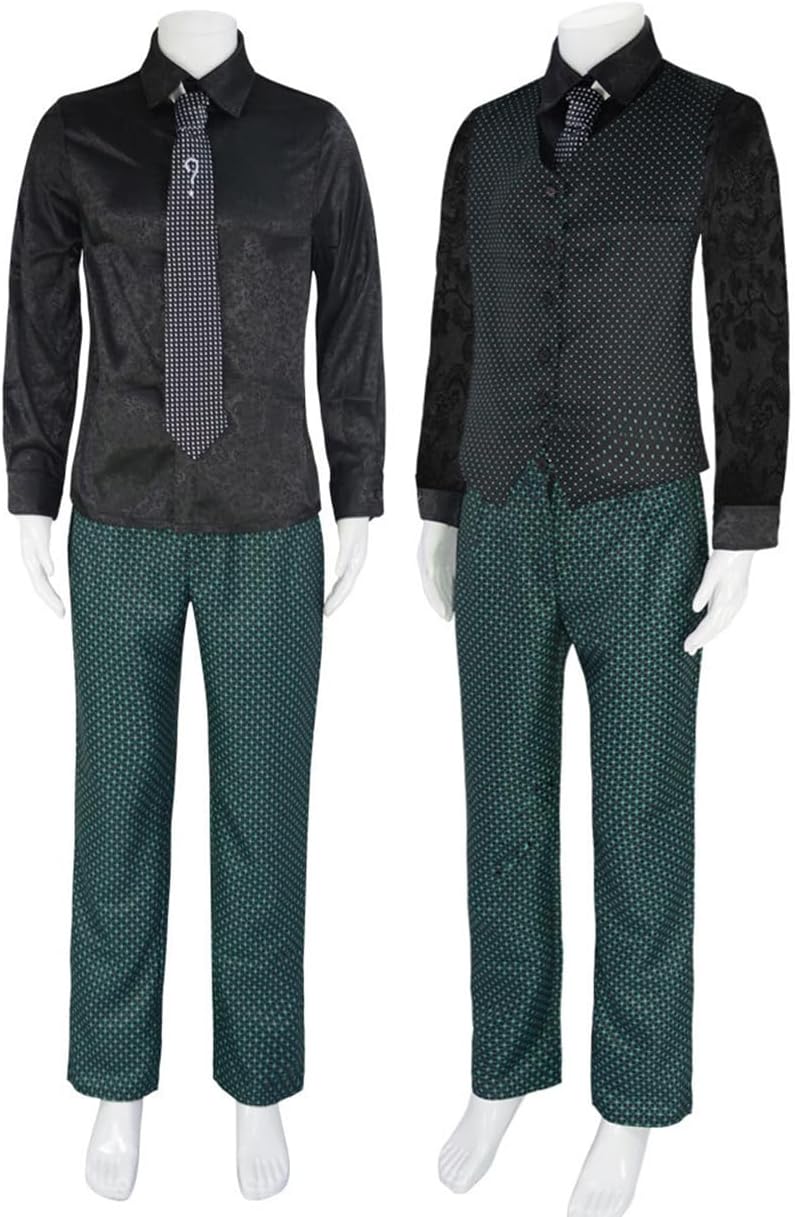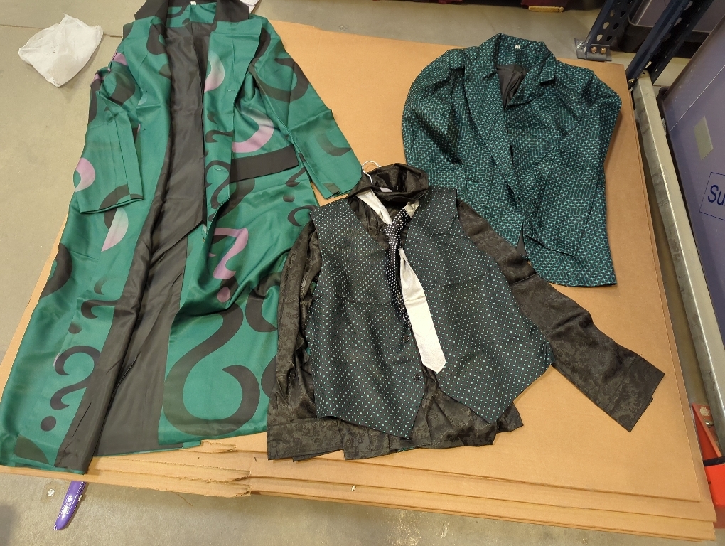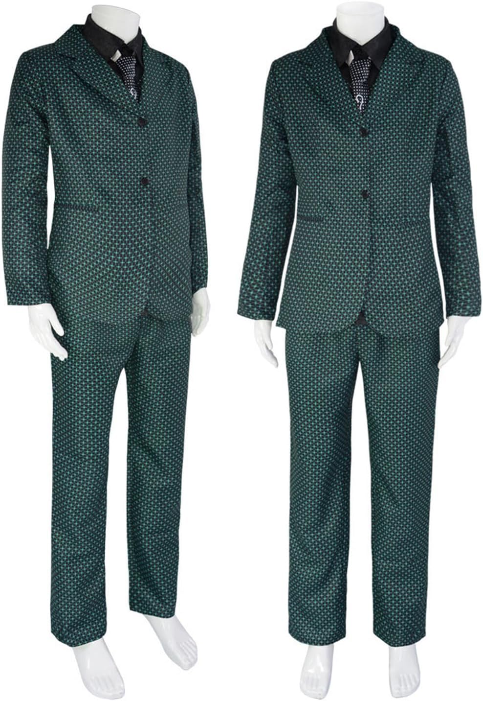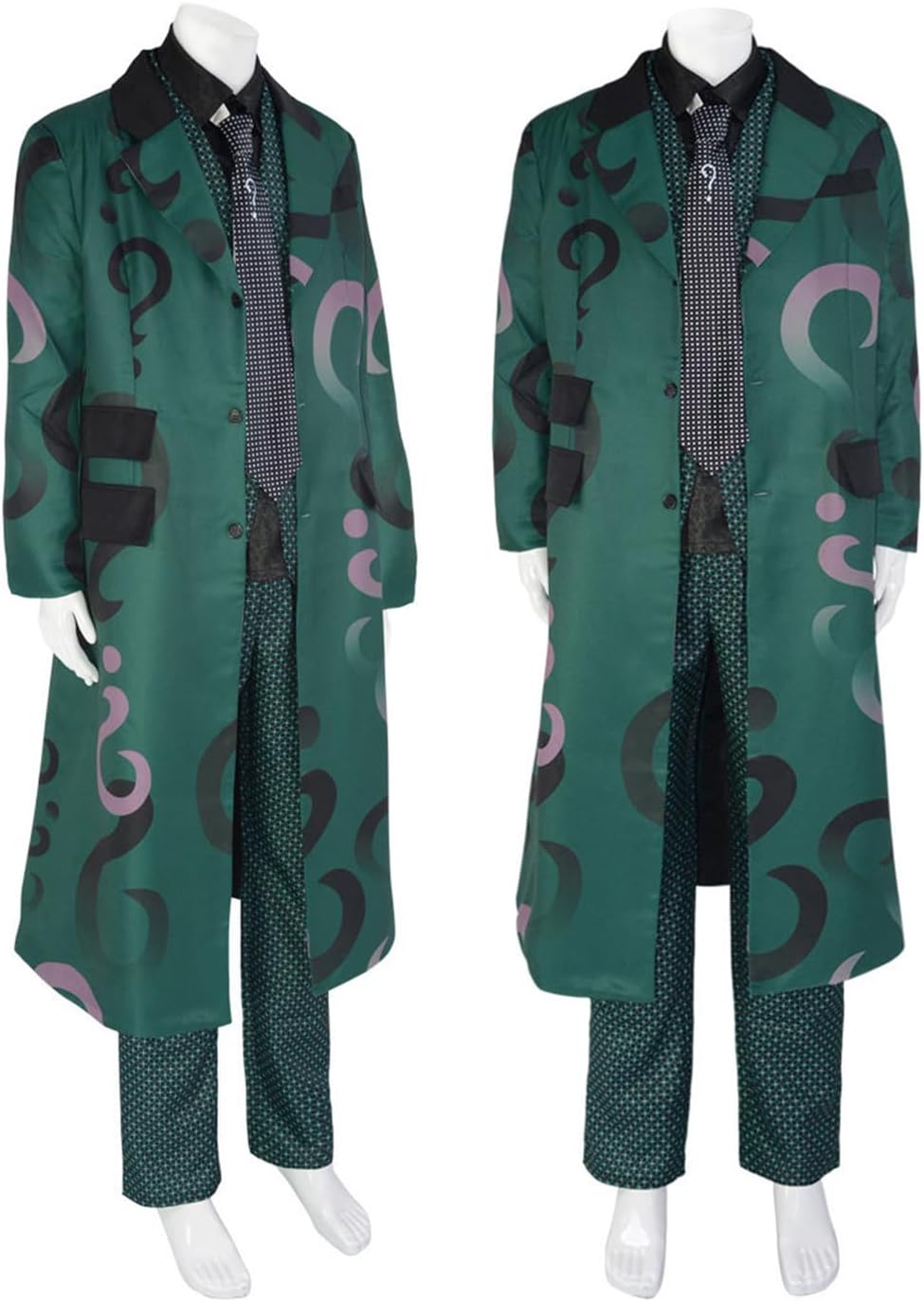 Mens XL The Riddler Cosplay Costume Trenchcoat Jacket Shirt Green Uniform Suit Halloween Outfit Necktie Full Set