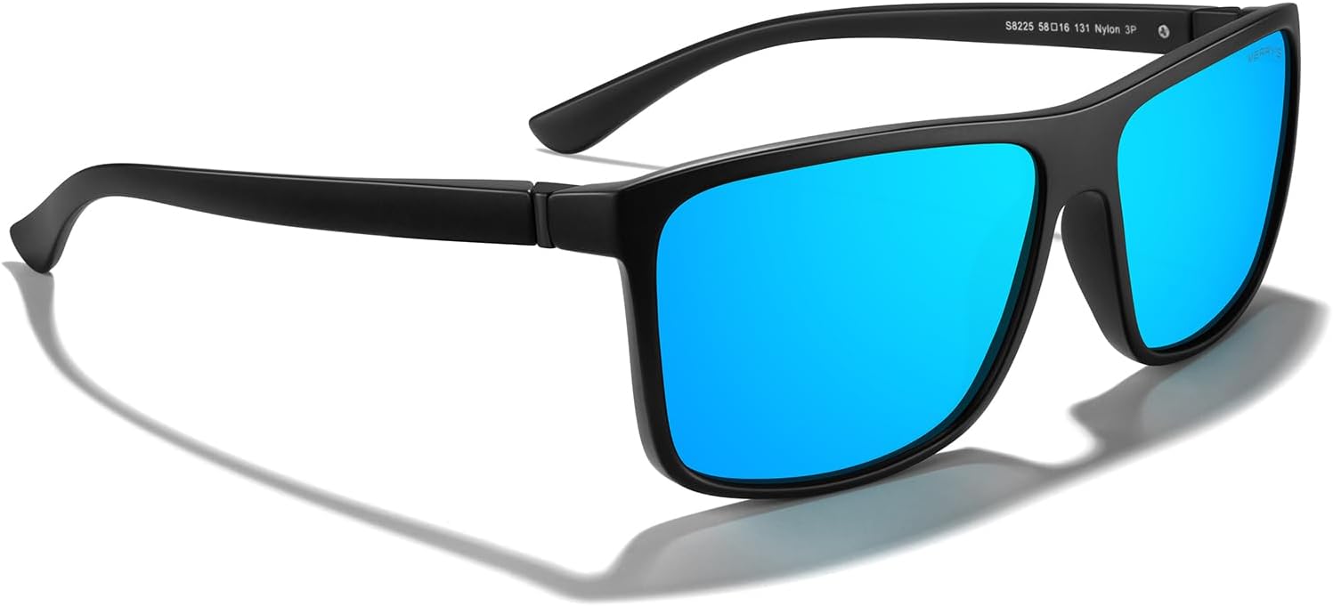 POLARIZED LENS - High quality solid color lenses, providing great clarity of vision, comfort and protection. Polarized sunglasses reduce glare reflected off of roads, bodies of water, snow, and other horizontal surfaces. Restore true color, eliminate reflected light and scattered light and protect eyes perfectly. Polarized sunglasses cut glare and haze so your eyes are more comfortable and you can see better.100% UV400, Protection Against Harmful UVA/UVB Rays.