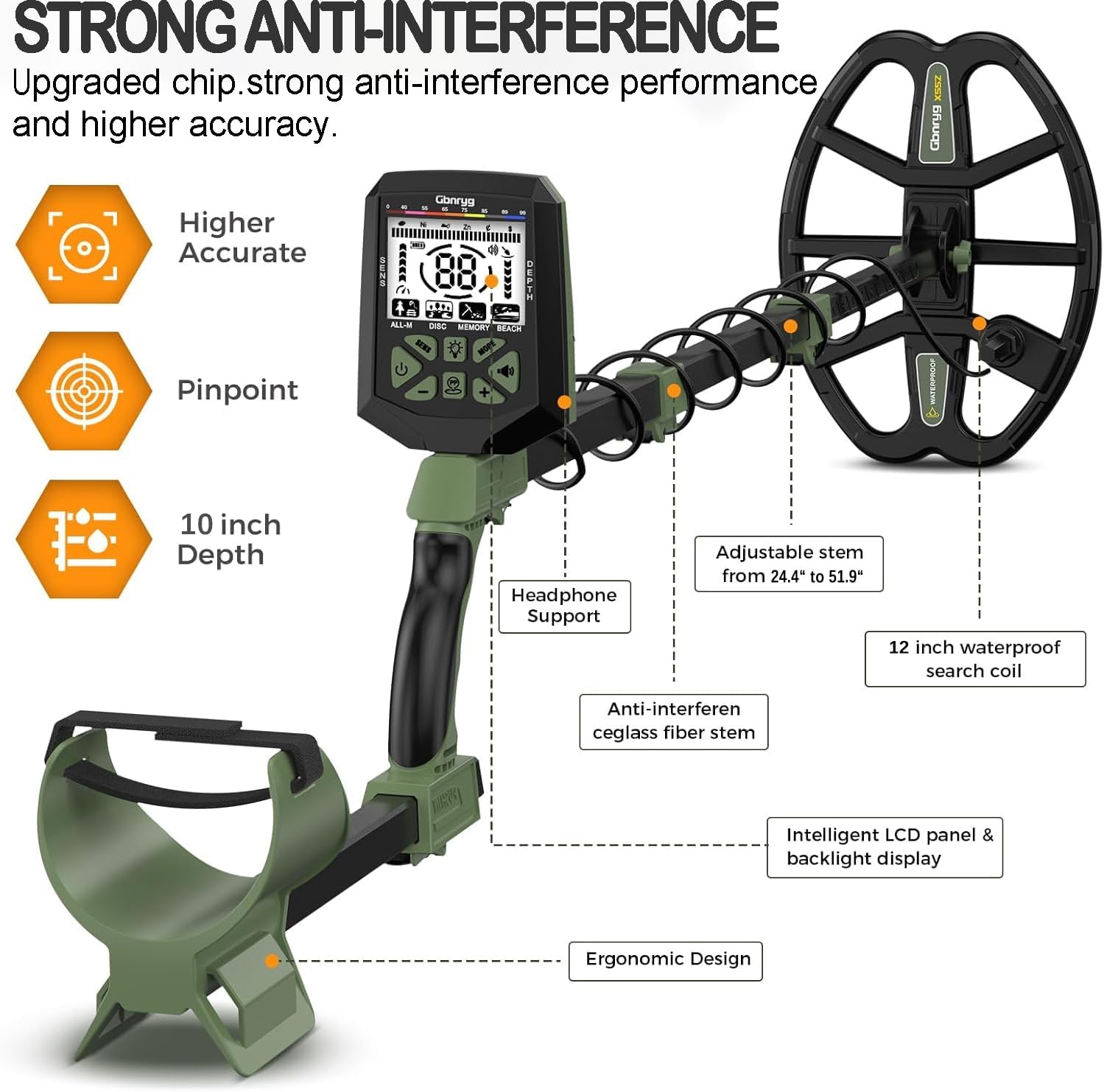 【High-precision detection】Gbnryg professional adults metal detector's larger coil covers a larger area with each scan, allowing you to cover the ground faster. The built-in upgraded DSP chip is 40% more accurate, with stronger detection stability, and will not lose the target due to fast speed. It can locate a quarter coin up to 12 inch underground.