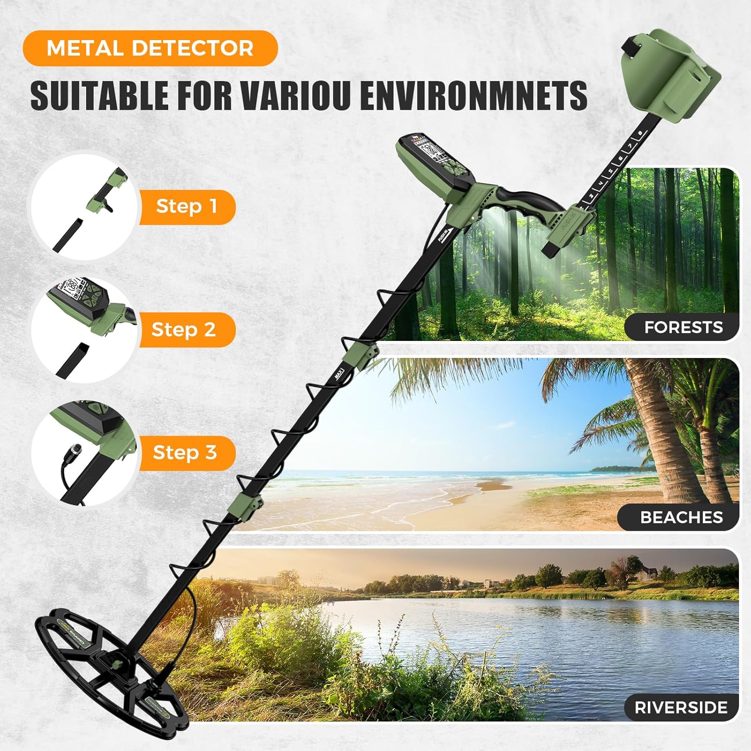 Metal Detector for Adults,12" IP68 Waterproof Search Coil with High Accuracy System,Advanced DSP Chip Technology,5 Modes with LCD Backlit Display for Beach Hunting&Jewelry Finding