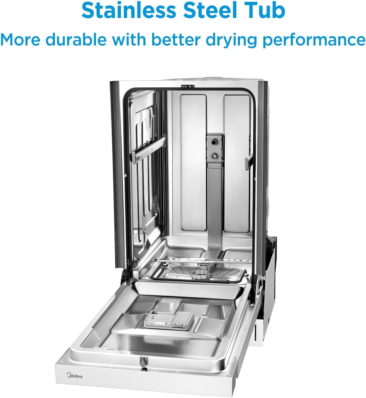 Midea MDF18A1AWW Built-in Dishwasher with 8 Place Settings, 6 Washing Programs, Stainless Steel Tub, Heated Dry, Energy Star, White