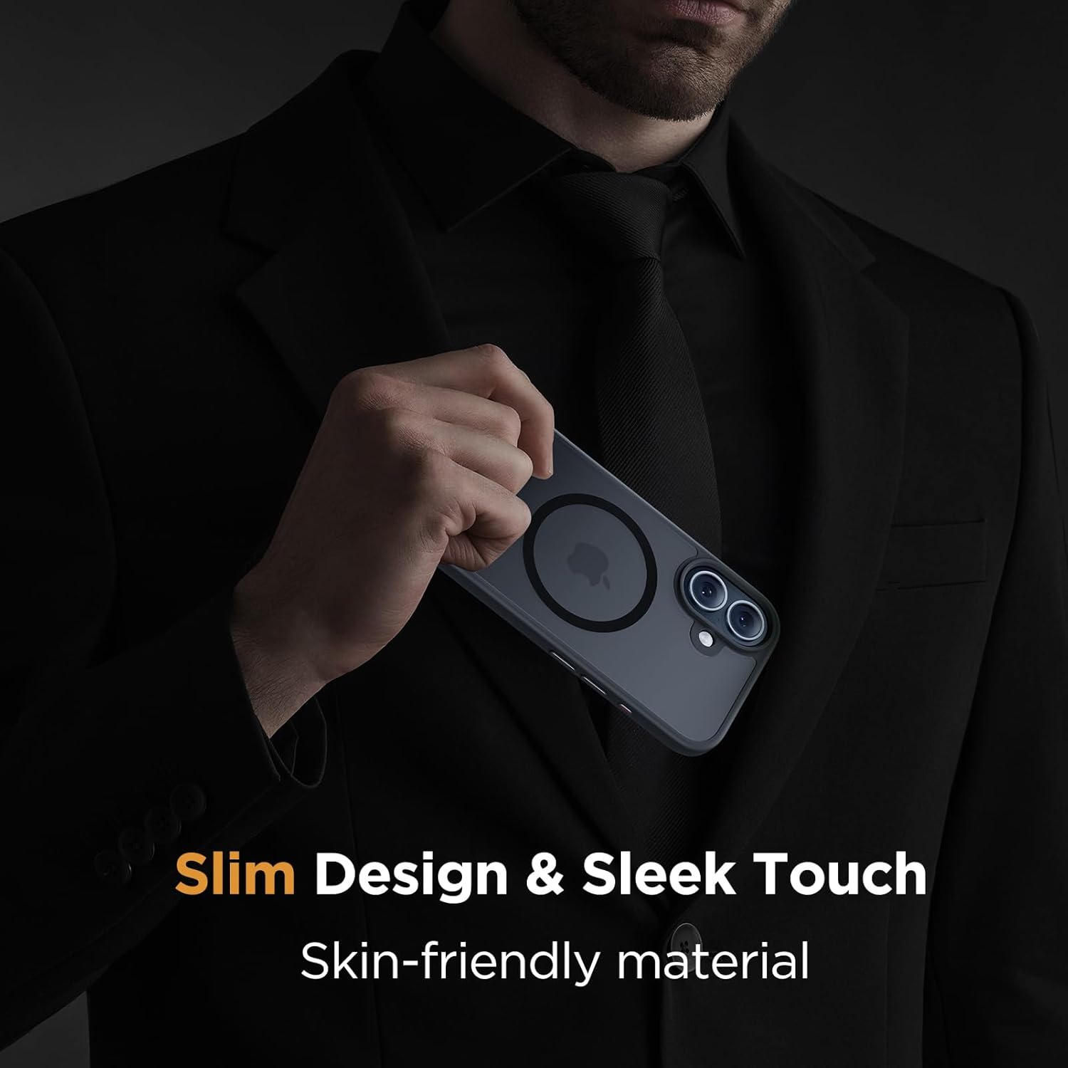Miracase Magnetic for iPhone 16 Case [with 2X Screen Protectors] [Compatible with MagSafe] Slim Thin Phone Case Military-Grade Protected for iPhone 16 Cover Bumper, Black