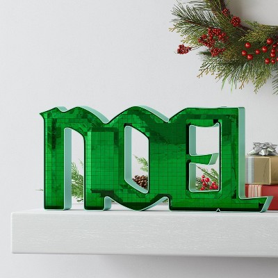 Bring a festive feel to your space with this Mirrored 'Noel' Christmas Tabletop Decorative Word from Wondershop™. This decorative tabletop sign spells out the word "NOEL" in light green hues and has a mirrored design to brighten any area of your home. Use this decorative sign as a solo piece or pair with coordinating tabletop decor to create an elegant display for the holidays.Welcome to the Wondershop™.