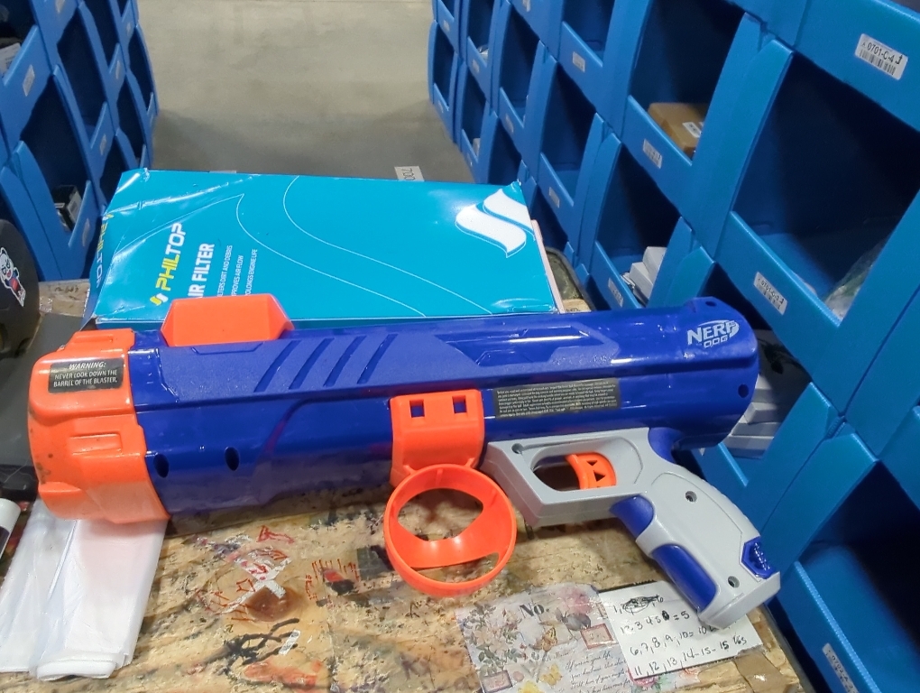 Missing Ball....Nerf Dog Tennis Ball Blaster Dog Toy Blue/Orange, 16 Inch Compact Blaster with