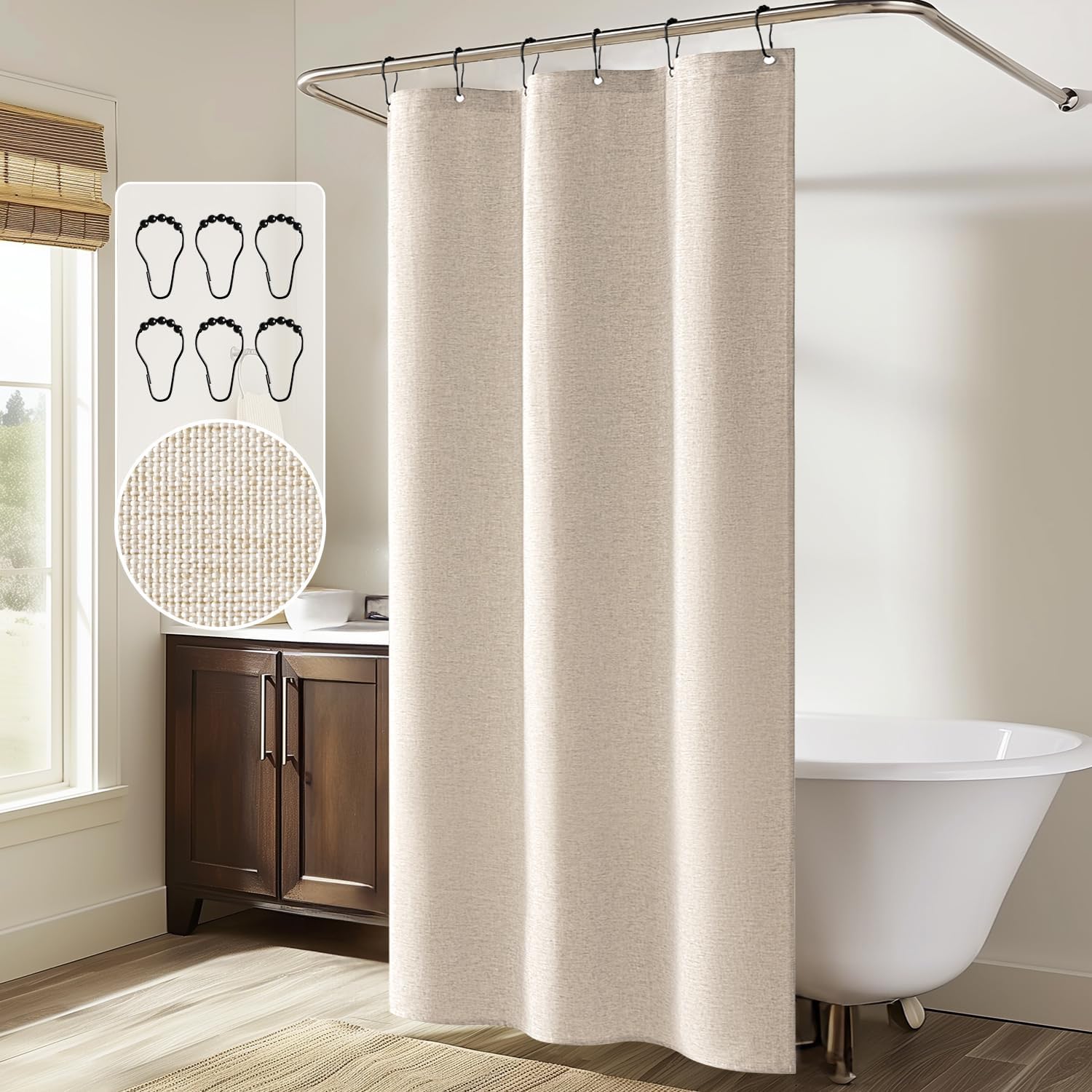 Package Includes - Comes with 1 faux linen shower curtain featuring reinforced metal holes and 6 bonus metal hooks, rust resistant and easy to slide. You will enjoy the added convenience of these bonus hooks while saving on the cost and effort.