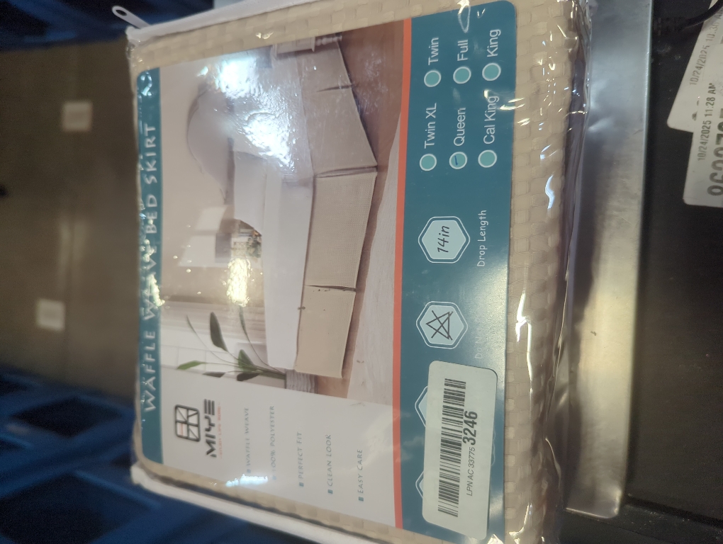 MIYE Pleated Waffle Weave Bed Skirt, Tailored Dust Ruffle 14 Inch Drop Easy Fit, Machine Washable,No Split Corners (Beige, Queen - 14" Drop)