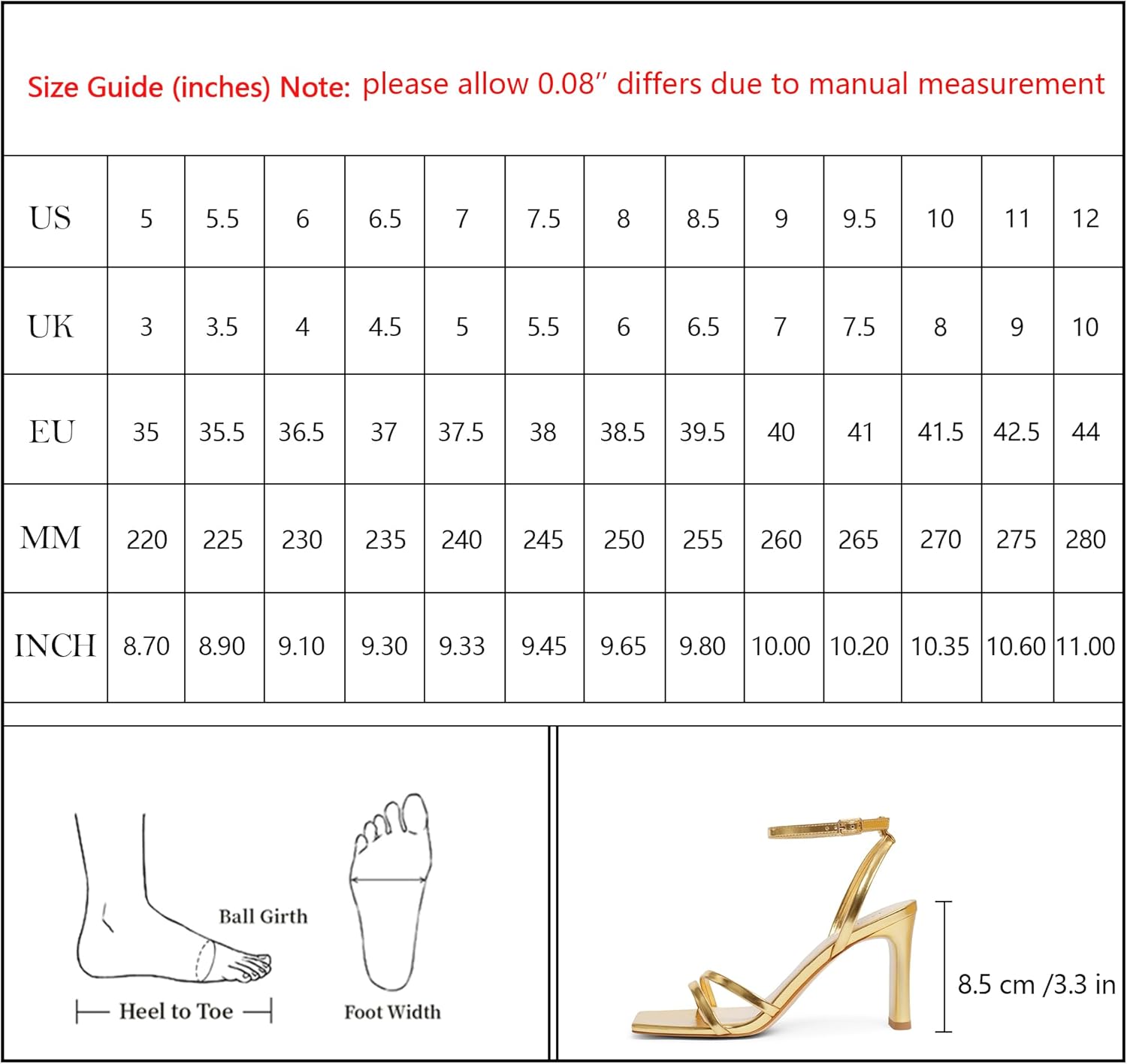 【Exceptional Comfort】: The heel height is about 3.3 in/8.5cm. The strappy heels feature a soft and cushioned insole for all day walking comfort.
