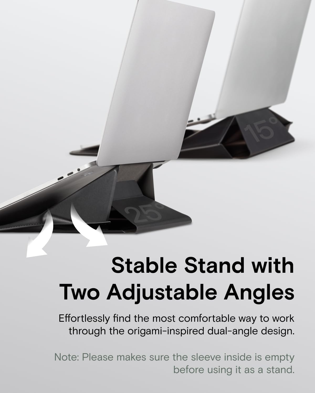 Two Angles Laptop Sleeve Stand: Instantly convert this sleek Laptop Sleeve into a sturdy Laptop Stand. Features dual-angle adjustment (15° for typing; 25° for viewing) to elevate your screen, reducing neck/wrist strain from poor posture. More than a protective Laptop Bag, this ergonomic Computer Bag works anywhere – transforming your carry sleeve into a pain-relieving workstation.
