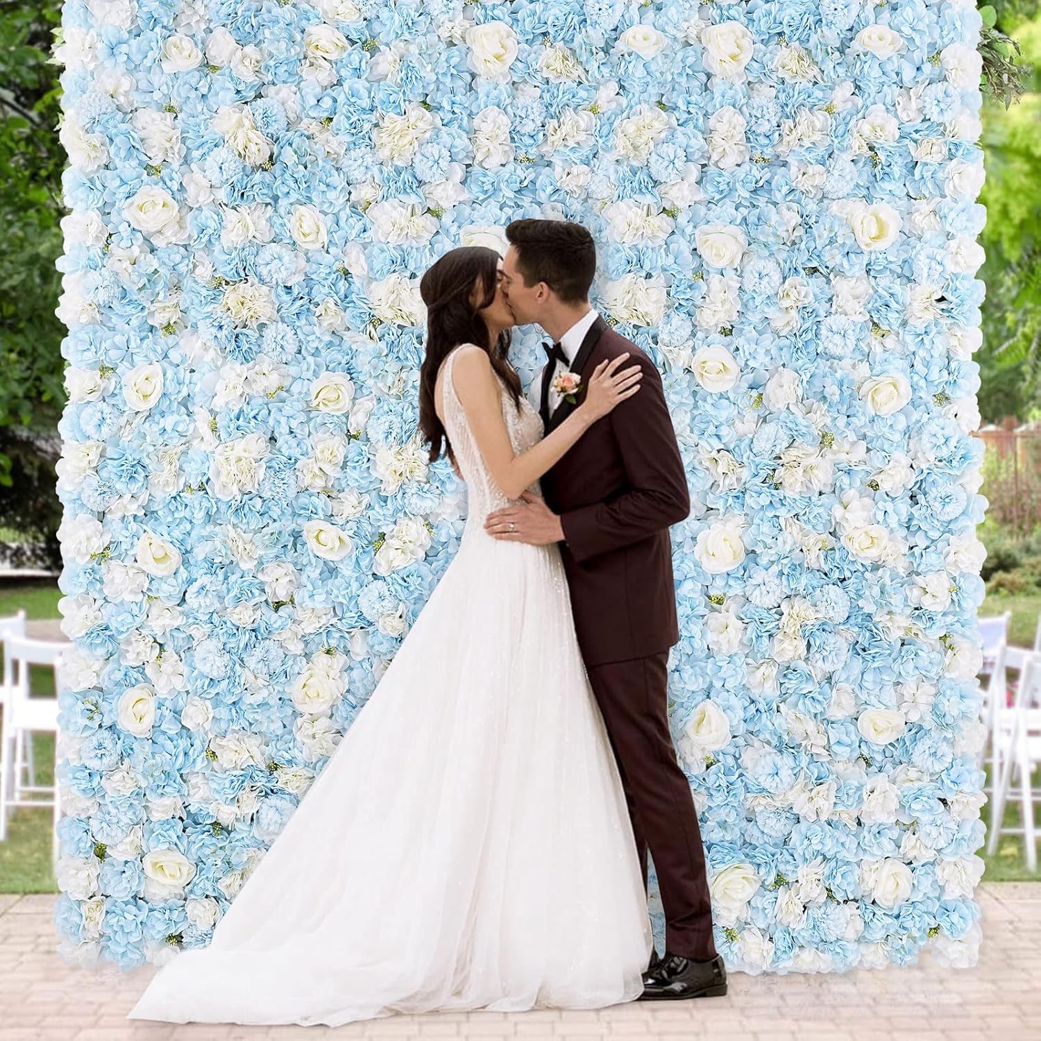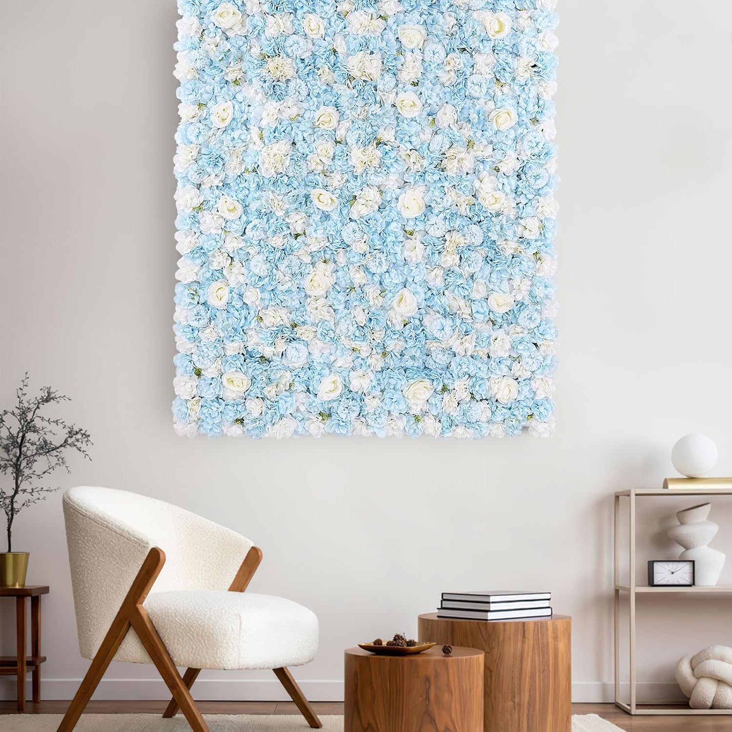 MoKoHouse Blue Backdrop Artificial Flower Wall: 12 Packs 15x15 Inches Photo Backdrop Panels Silk Flower Wall for Wedding Party Baby Bridal Shower