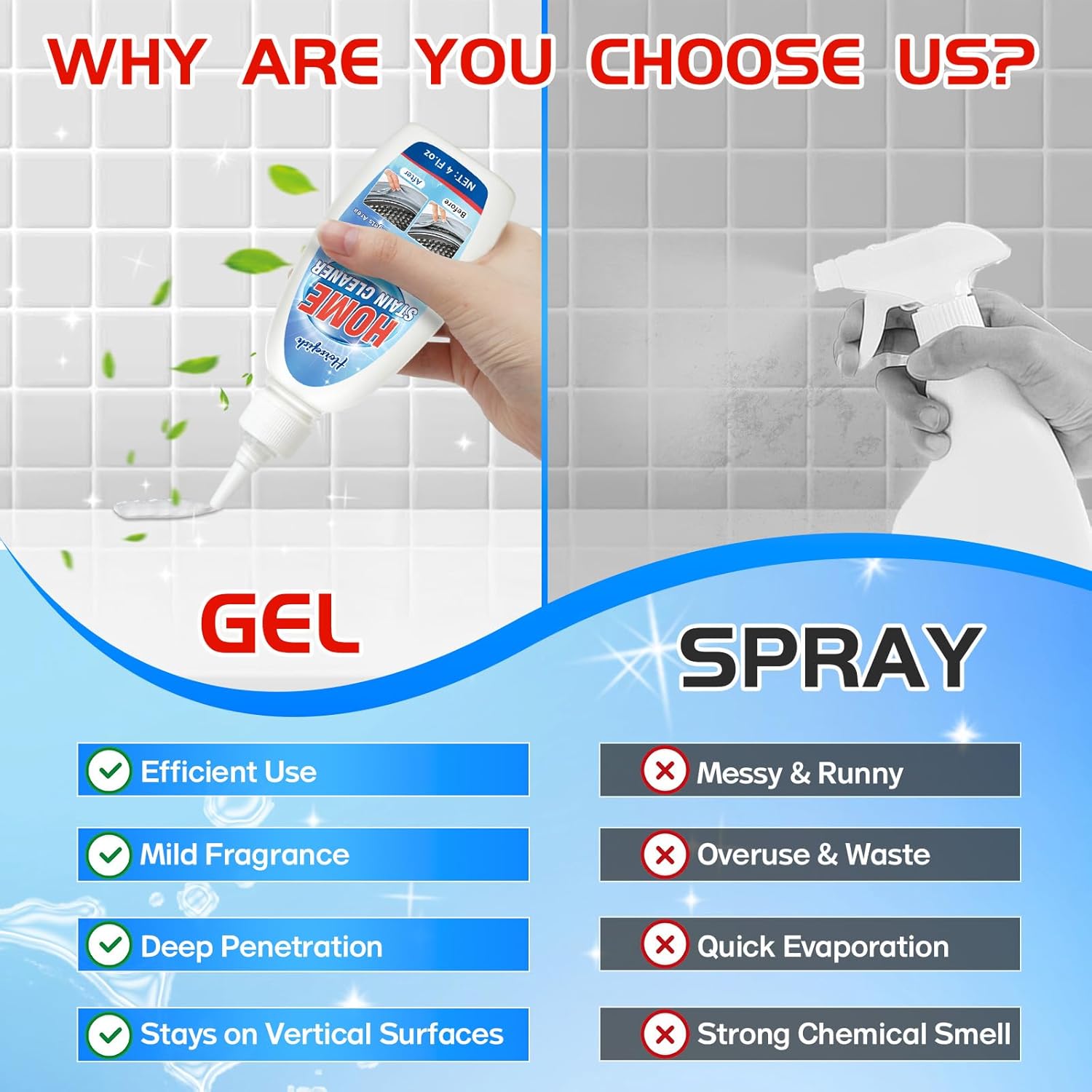 Powerful Cleaning Action: The potent formula of home stain cleaner makes it easy to clean various surfaces, such as silicone and tile. The washing machine cleaner gel type ensures it adheres to any surface, even vertical and inclined surfaces, without flowing down.