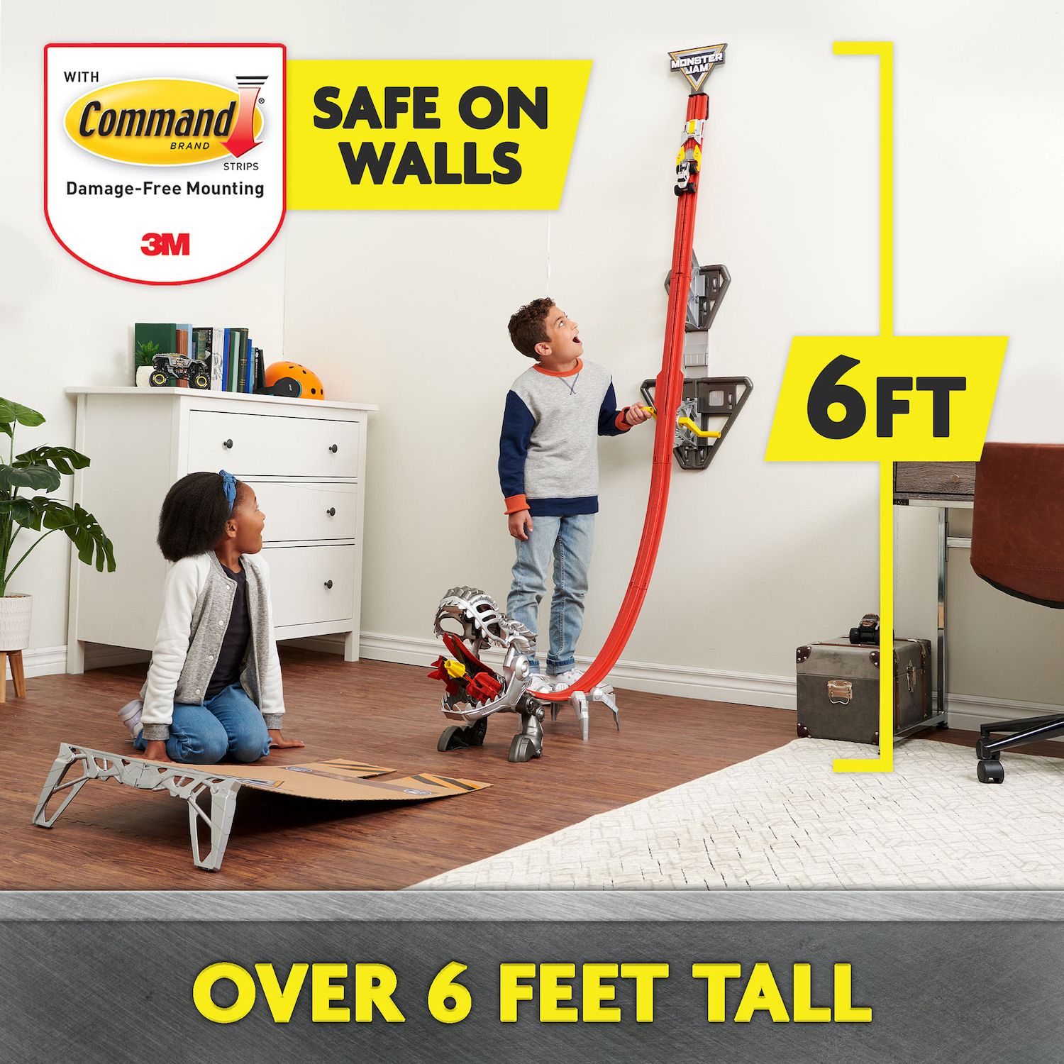 - OVER 6 FEET TALL: The ThunderROARus Drop Playset is massive, standing over 6 feet tall and 1 foot wide. Mount to the wall securely with the provided 3M Command Strips for long lasting fun that is safe on walls with zero damage.