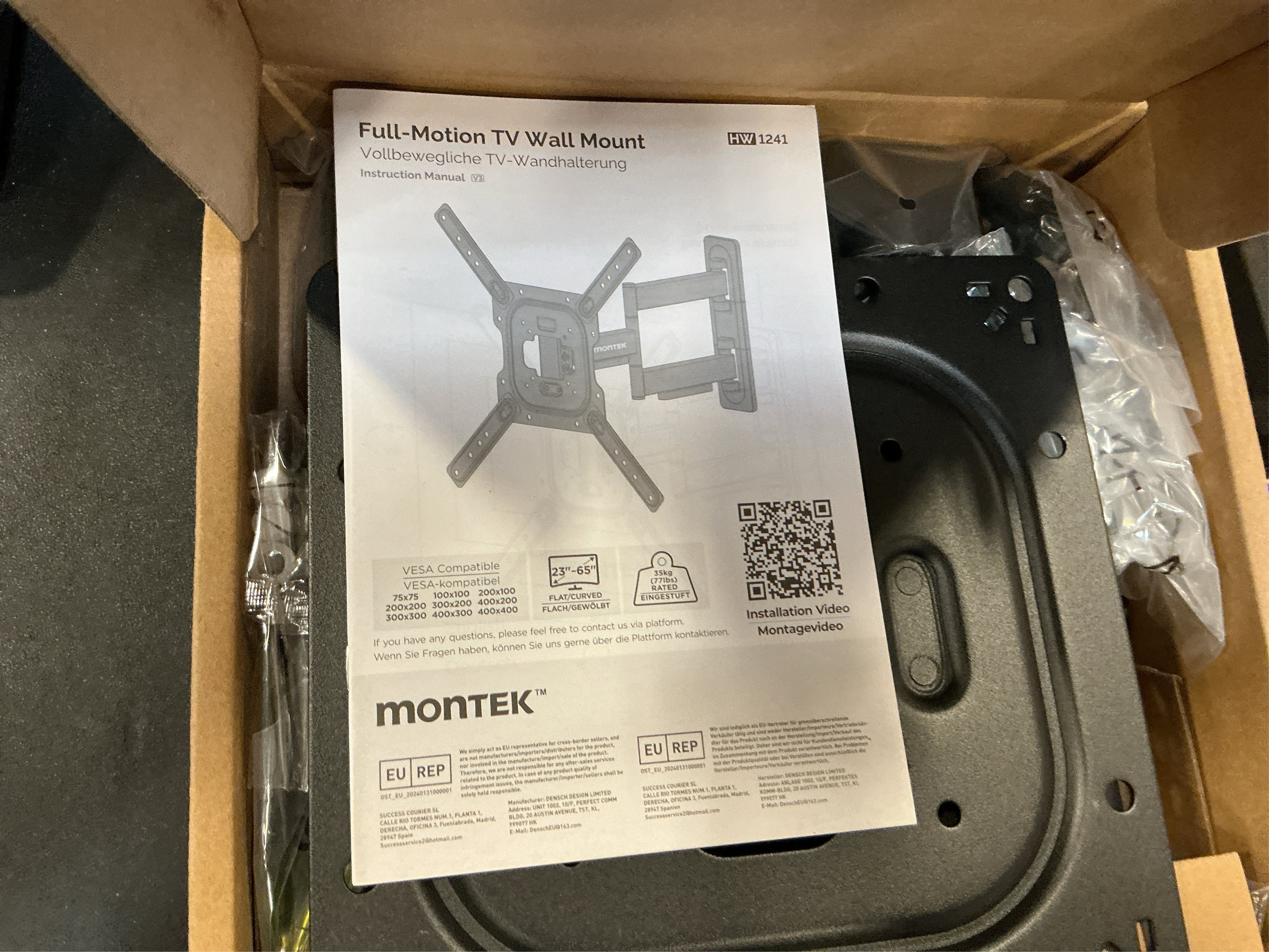 new only open for inspection TV WALL MOUNT COMPATIBILITY: This full motion tv wall mount fits for most of 23-65inch flat curved screen TVs and monitor with VESA patterns 75x75mm up to 400x400mm and up to 77lbs. Compatible with wood stud, concrete, and brick wall mounting. Do not install the tv mount on drywall alone. perfect center design.