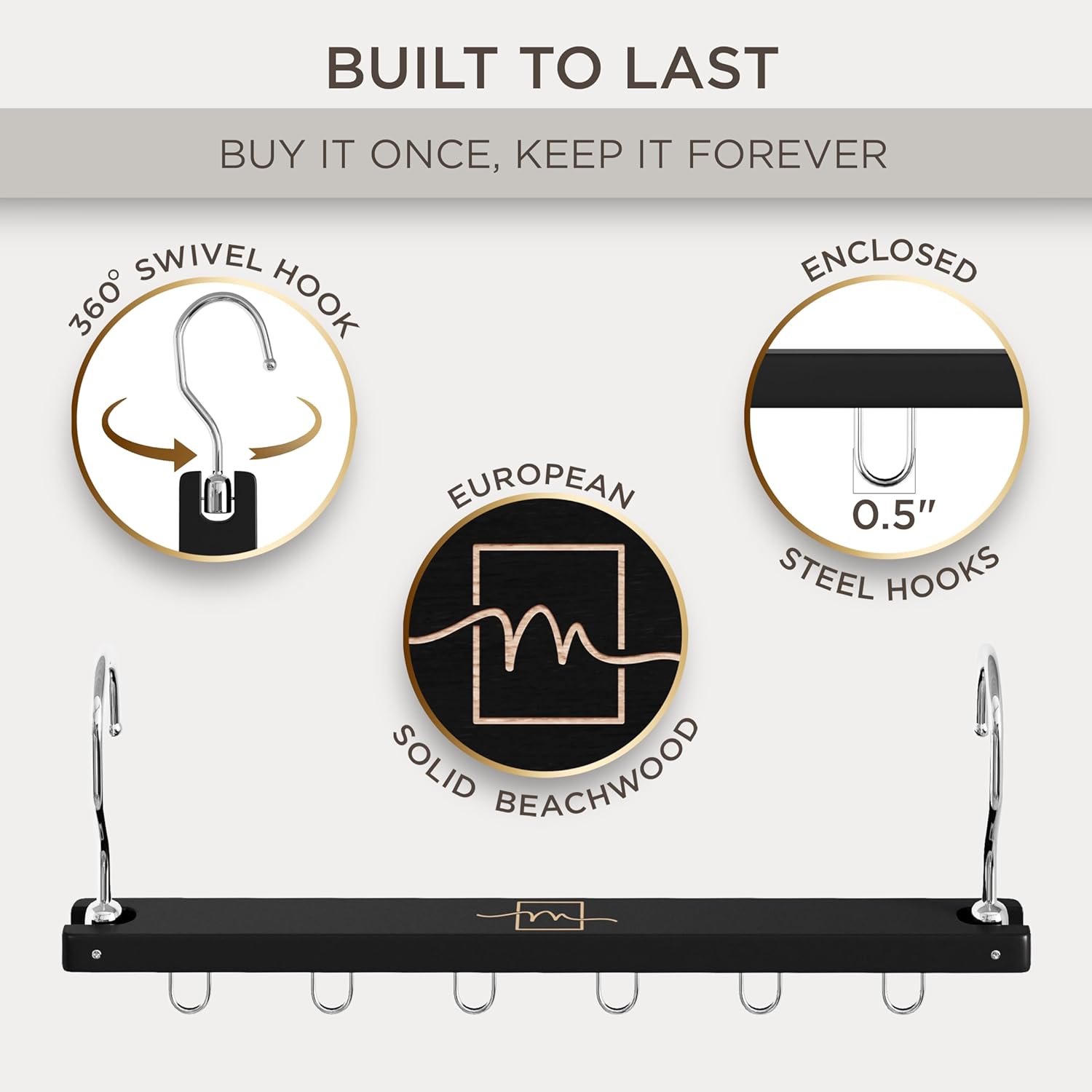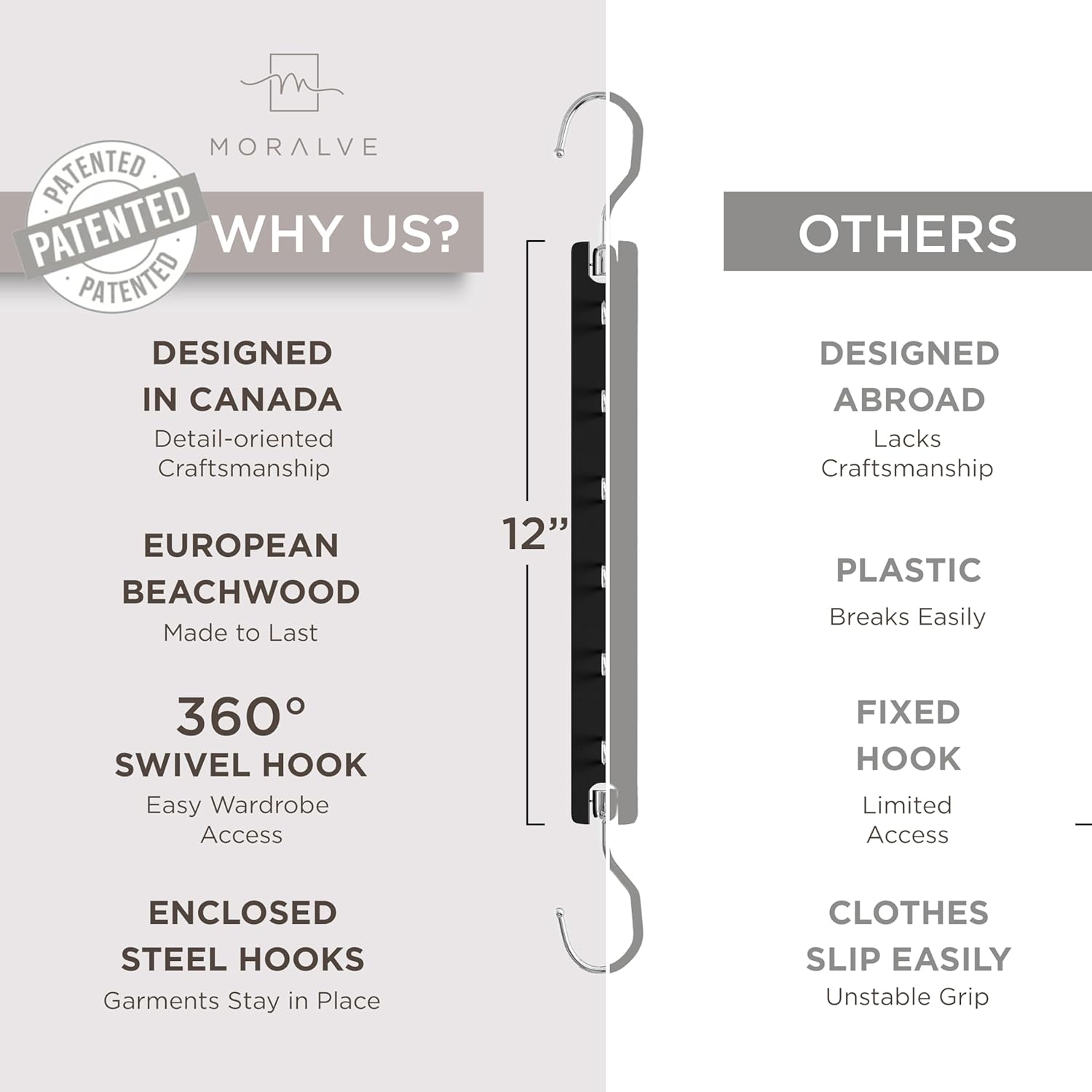 MORALVE Space Saving Hangers for Closet – 4 Pack European Beechwood 6-Tier Shirt Organizer with 360° Swivel Hook – Collapsible Clothes Hanger for Closet Organization (Hangers Not Included)