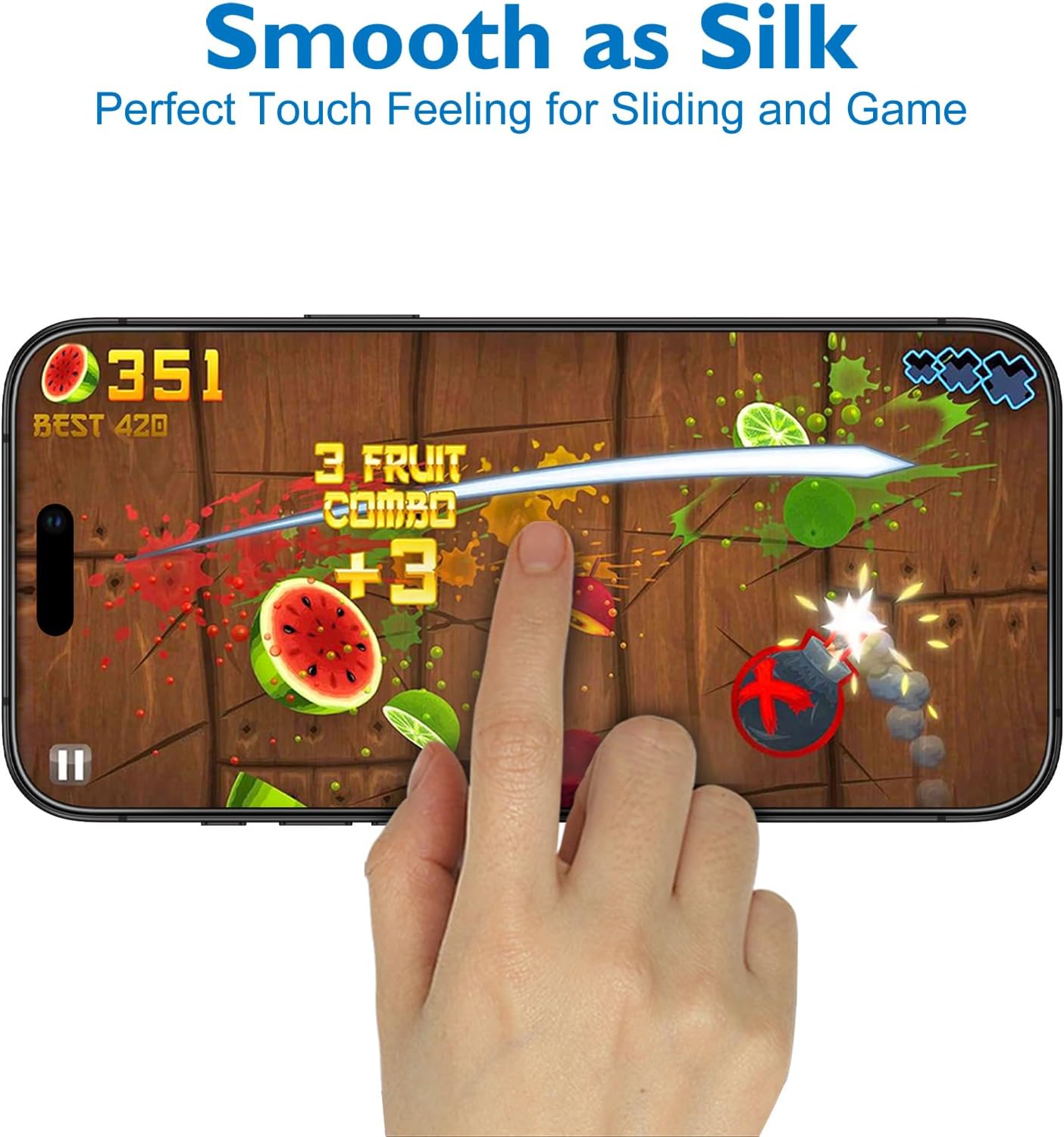 【Smooth as Silk】The perfect matte surface has the silk-like touch feeling, magically resists dirt, sweat and annoying fingerprints, very little frictional resistance even for hand sweating. Easy to flick operation, "Comfortable Game Operation". 100% touch accurate.