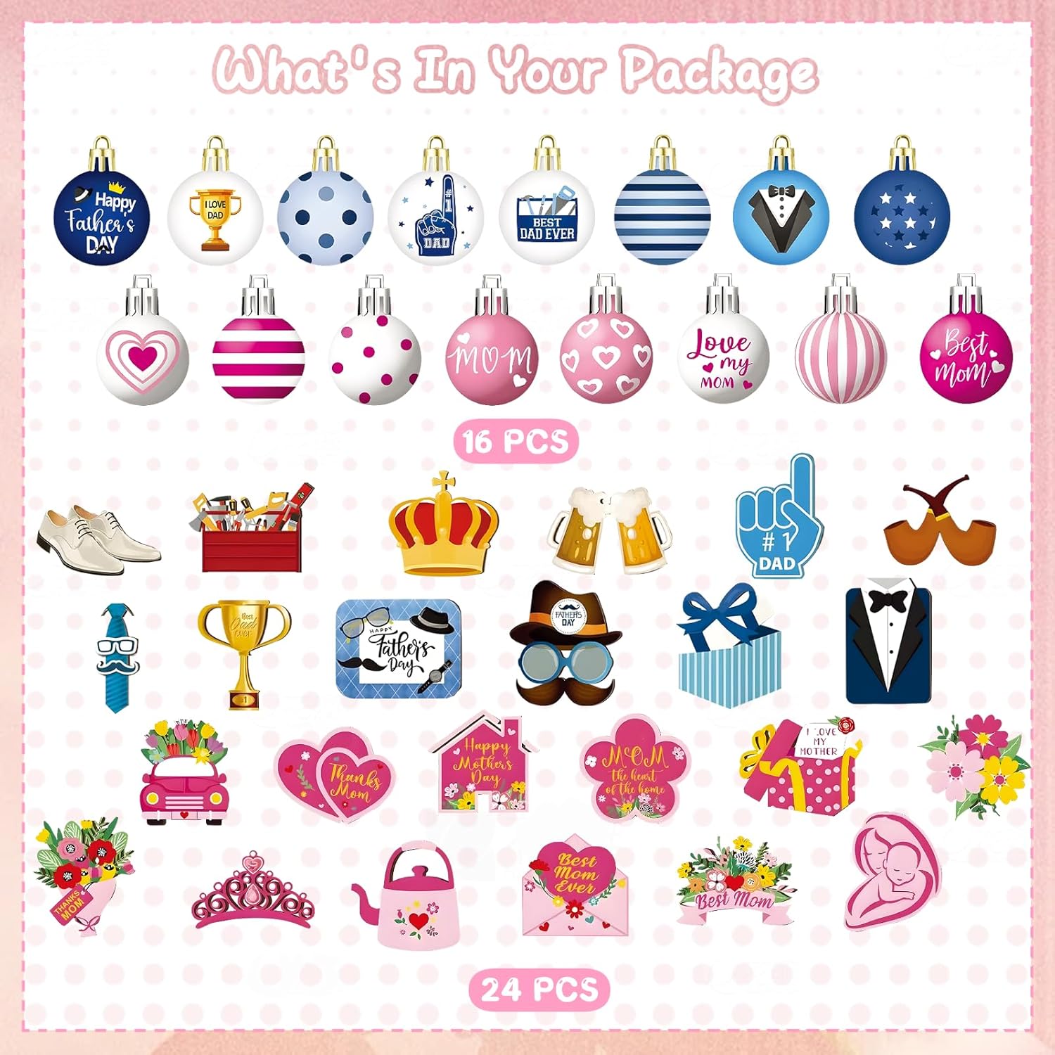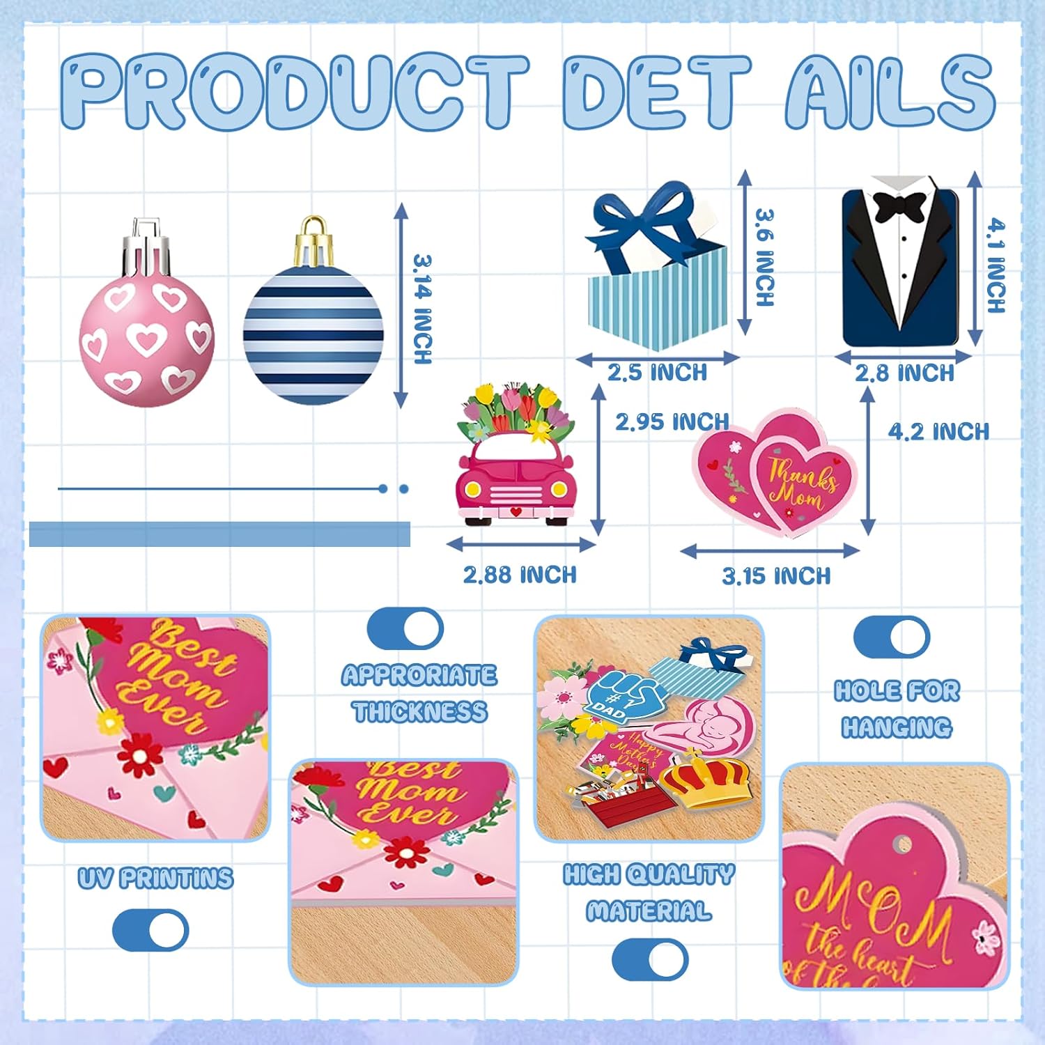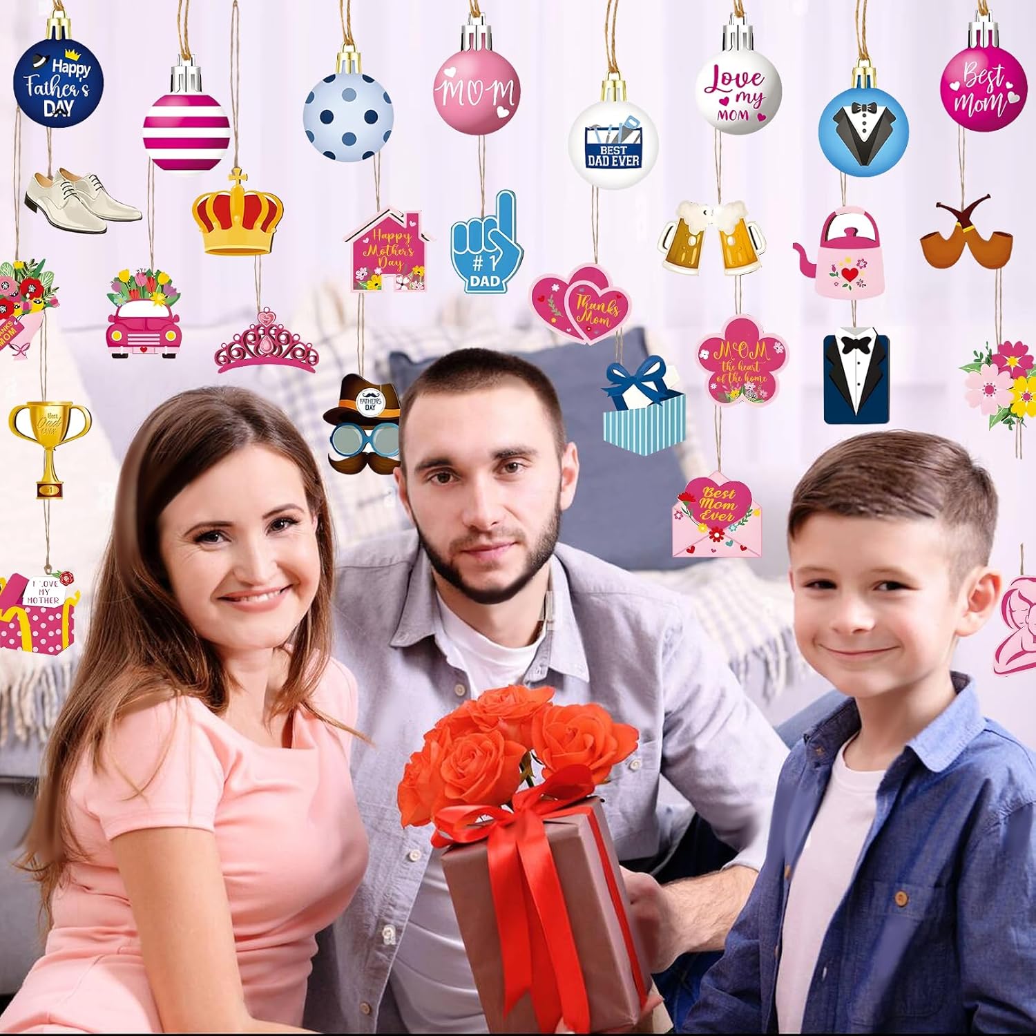Mother's Day Tree Ornaments Set, 56 Pieces, Decorative Hanging Ornaments for Mother's Day and Father's Day