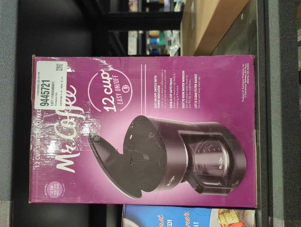 The Mr. Coffee® 12-Cup Switch Coffee Maker offers classic functionality that keeps brewing simple and easy. Just set it up, turn it on, and brew! Grab-a-Cup Auto Pause halts the brewing cycle so you can pour a cup, and then continues brewing after you place the carafe back into position. The easy switch, with power indicator, lights up to show the coffee maker is on, or to remind you to shut it off. The easy-to-view water window lets you see the exact water level, to prevent overflows. With the lift clean filter basket, this automatic drip coffee maker is simple to clean and care for. Enjoy rich-tasting coffee, expertly brewed for you without the fuss, with the Mr. Coffee® Easy On/Off Switch 12-Cup Coffee Maker.