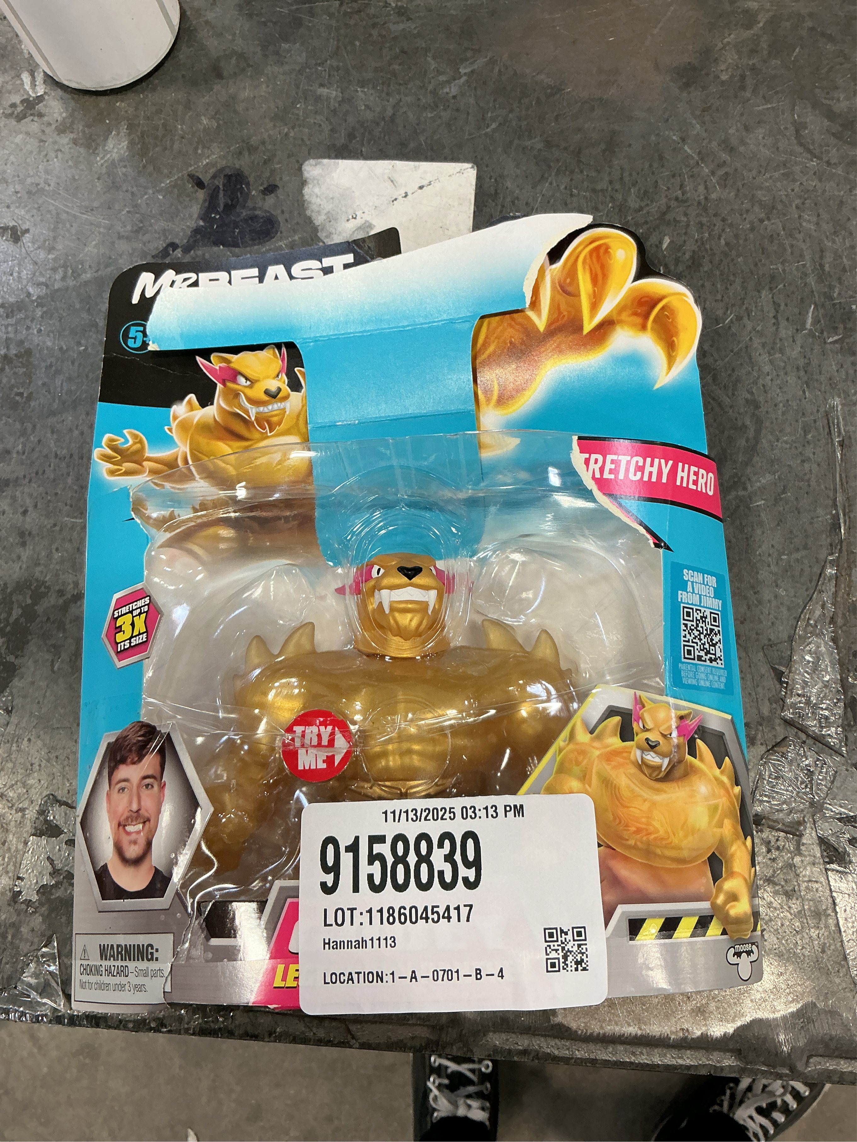 Introducing the NEW MrBeast Lab - Legendary Panther Stretchy Hero. The NEW MrBeast Lab - Legendary Panther Stretchy Hero is 4.5" (11cm) tall. Kids can stretch their Legendary Panther Stretchy Hero up to three times its size. The Legendary Panther Stretchy Hero has a unique golden filling. There are 3 MrBeast Lab Stretchy Hero Panther Figures to collect including: the Iconic, Hypercharged and Legendary Panther. Warning: Choking Hazard - Small Parts. Not for Children under 3 years. Warning: Do not heat or microwave. Not bite or pierce. Do not leave in direct sunlight. Do not leave in vehicle on hot day. Do not wrap or tie the product around anyone's head, neck, arm, or leg. Keep away from pets.