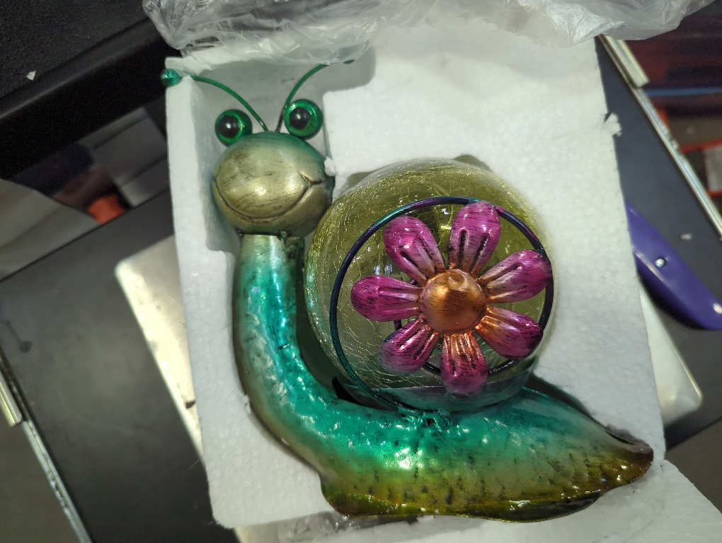 Solar tabletop lantern design a vivid colorful snail pattern with crackle glass, suitable for outdoor indoor table decoration, make a cute landscape to your home. Solar light outdoor converts sunlight into electricity in daytime, glowing at dusk auto, this lamp will make you easy to use for outdoor. Solar lanterns outdoor waterproof IP44 with durable, you can put it anywhere you want to decorate, creating a relaxing atmosphere for patio garden tabletop decor. Outdoor tabletop lantern is perfect as a garden snail decorative gift, which can be new beautiful addition to your garden and yard. Package Includes a solar light outdoor lantern.