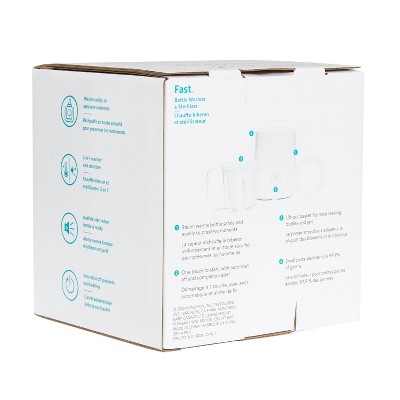 Perfect warmth in a hot minute. Meet your favorite feeding timesaver, the Fast Bottle Warmer & Sterilizer! Whether you’re prepping baby bottles or sterilizing small parts, this two-in-one warmer harnesses the power of steam to get the job done in as little as 60 seconds. Say goodbye to hot spots and hello to faster, fuss-free feedings at the right temperature, every time. The steamer duo warms safely and evenly to preserve nutrients along the way, fits most standard bottles and baby food jars, and sterilizes 99.9% of germs on nipples and pacifiers, too. It even shuts off automatically for extra peace of mind during extra exhausted days and nights. Not too hot, not too cold, and not too slow–the Fast Bottle Warmer & Sterilizer is always just right.