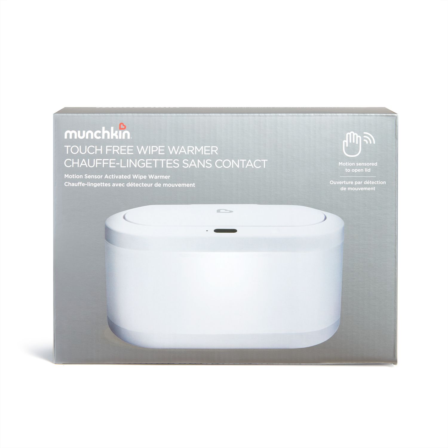Make changing time easy with this Munchkin Touch Free Wipe Warmer. FEATURES Automatically opens with a quick wave of the hand Nightlight feature shuts off after 15 minutes perfect for overnight diaper changes Won't heat wipes beyond safe warmth Plugs into wall and prevents drying or discoloration Stores up to 100 standard baby wipes at a time (compatible with all brands) DETAILS 10" x 5.2" x 7.3" Plastic Wipe clean Imported MODEL NUMBERS Model no. 21315