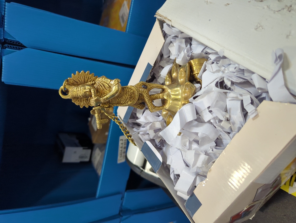 Open for inspection...Dimensions : This large decorative bell measures an impressive 27 inches in height and 3.3 inches in width, making it a striking and eye-catching accessory for your home temple, pooja room, or meditation space, perfect for enhancing the spiritual ambiance and aesthetic appeal of any sacred setting.