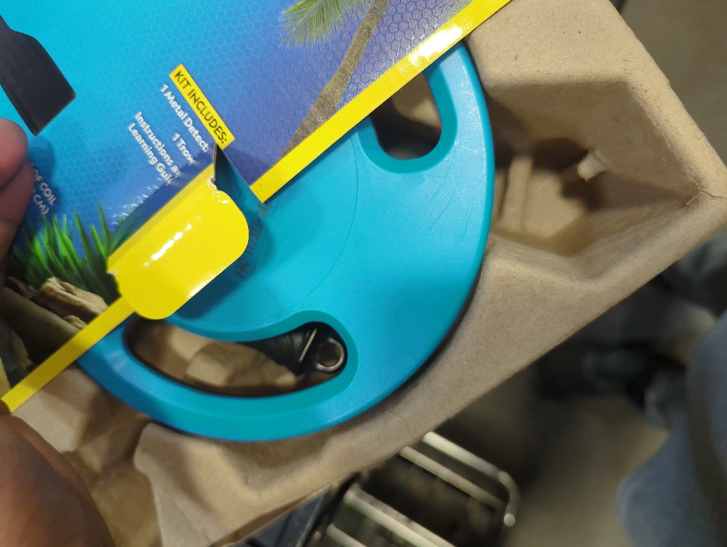 New open for inspection ....FIND BURIED TREASURE – This metal detector kit is the perfect tool for a treasure-hunting expedition! The 7.4" dual coil is waterproof up to 4" and can detect objects up to 4" deep. It's perfect as a beach metal detector!