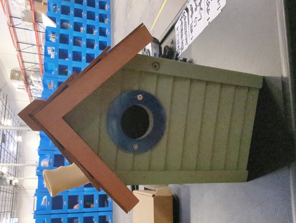 SPECS: The bird house measures 9.9 x 7.9 x 7.04 inches (25 x 20 x 17.9 cm) and weighs 1.86 lbs (0.845 kg). It is made of pinewood and iron.