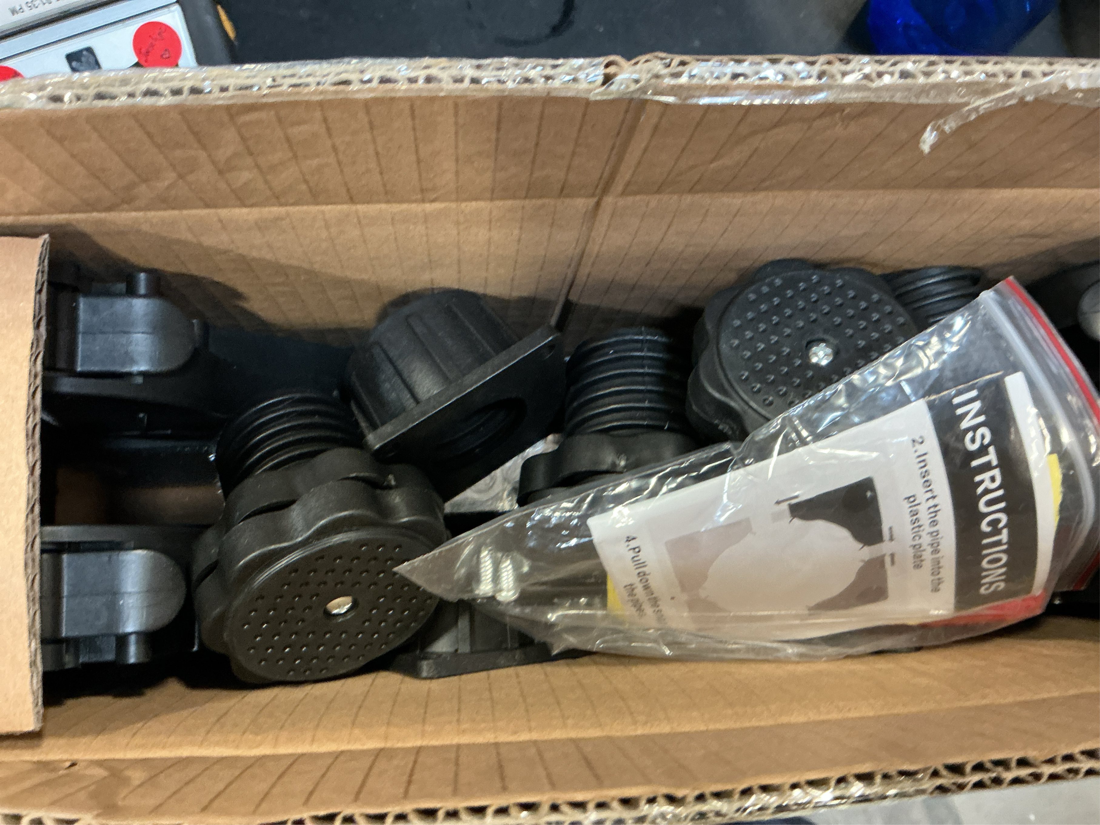 EASY TO ASSEMBLE : The mobile base set includes 4 strong feet(no wheels), what you need to do just to install the connecting rod and the feet. The stand base could be easily assembled with instruction