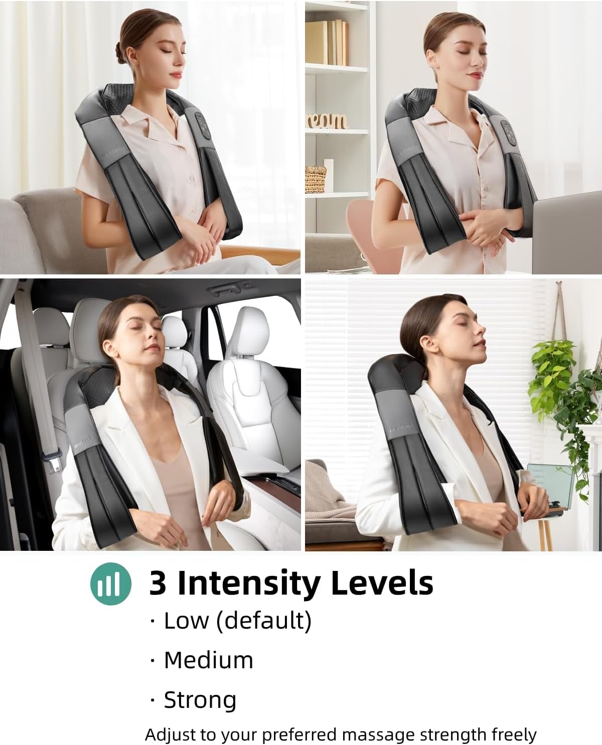 ✓ Customizable Massage: With 16 deep-kneading massage nodes and 3 adjustable intensity levels, this massager provides tailored relief for your whole body, including the neck, back, shoulders, legs, and feet (Starts gently at the lowest setting - easily customize your perfect massage intensity)