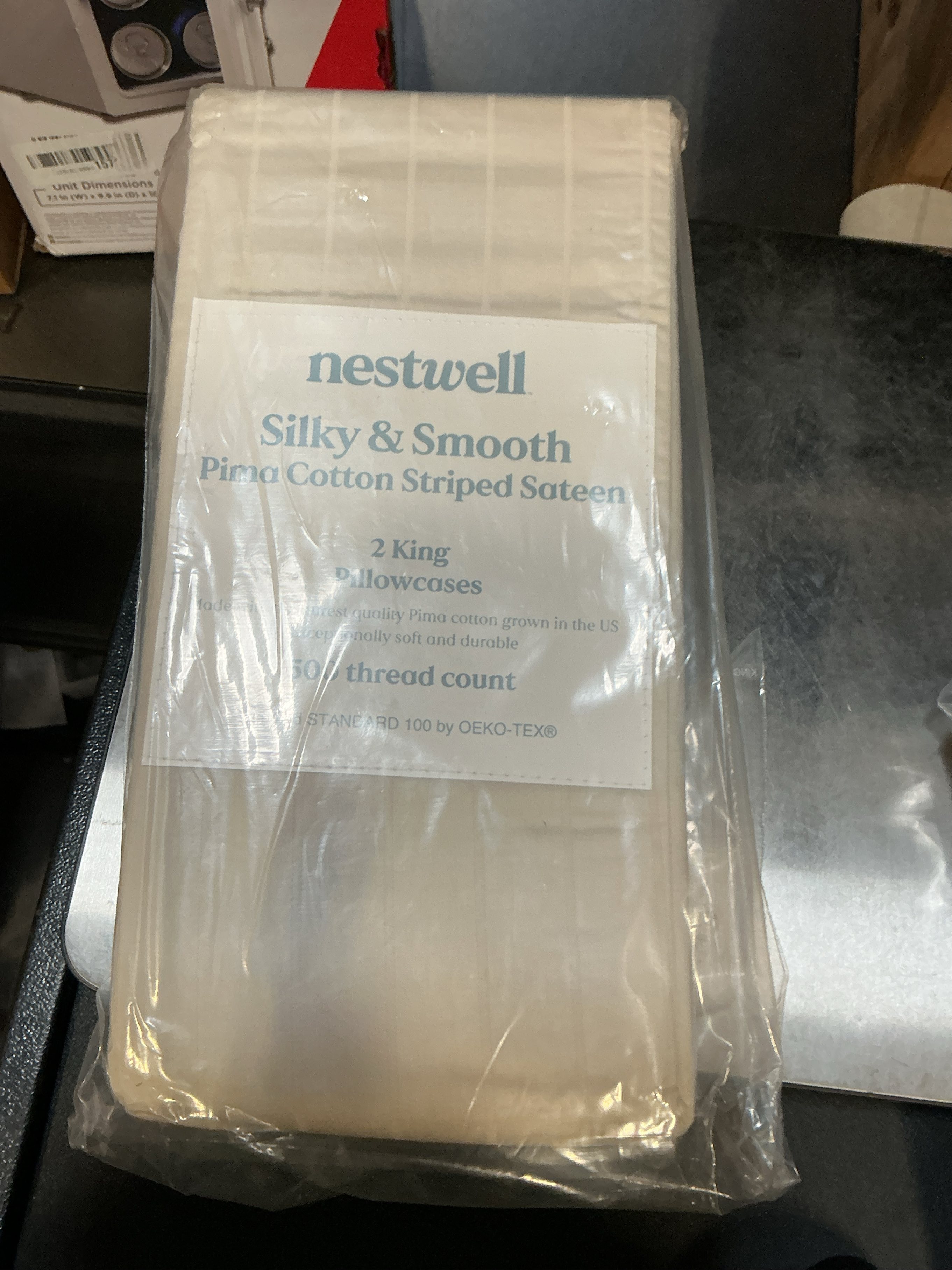 Nestwell Pima Cotton Sateen 500-Thread-Count King Pillowcases in Birch Stripe (Set of 2)