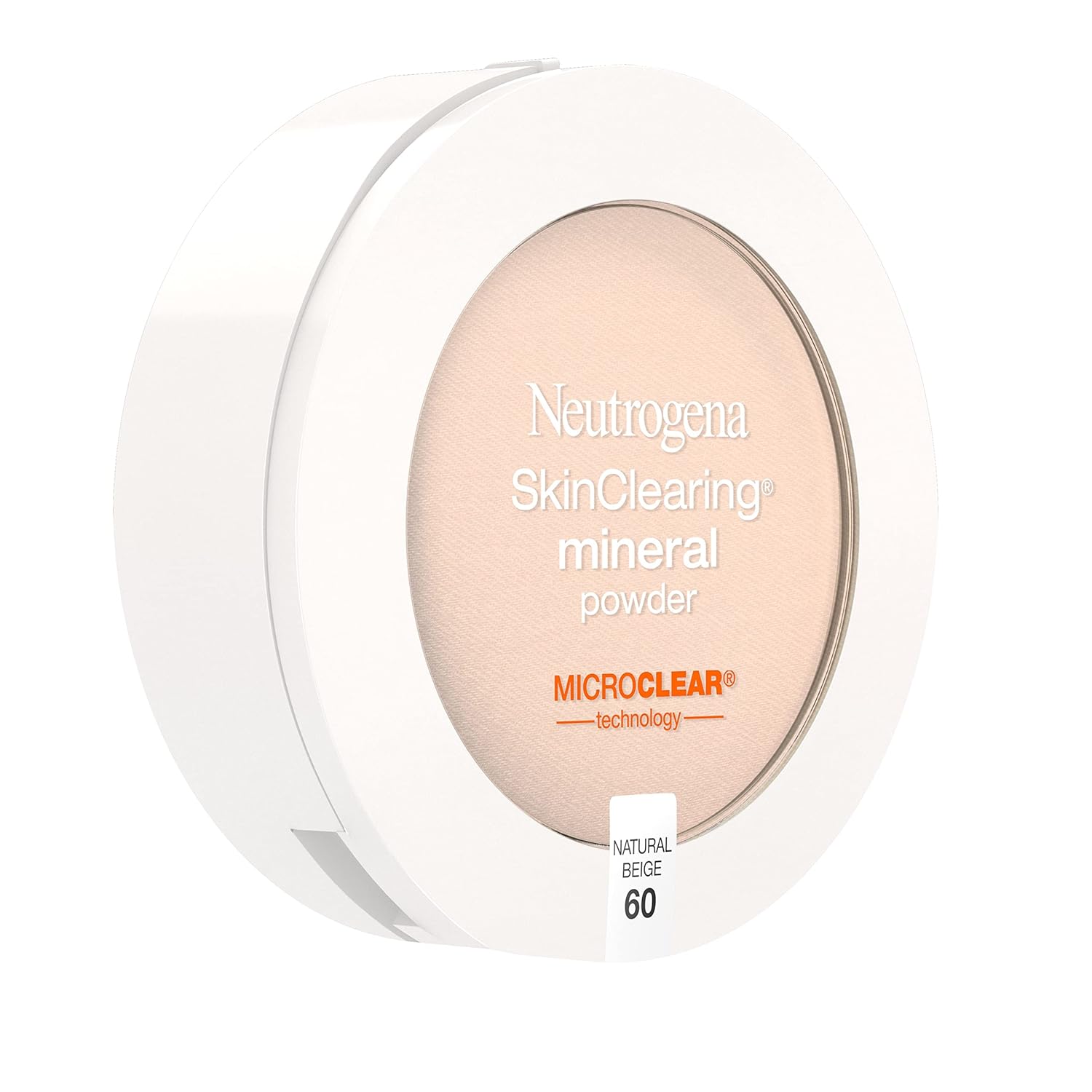 Neutrogena SkinClearing Mineral Acne-Concealing Pressed Powder Compact, Shine-Free & Oil-Absorbing Makeup with Salicylic Acid to Cover, Treat & Prevent Breakouts, Natural Beige 60,.38 oz (Pack of 2)