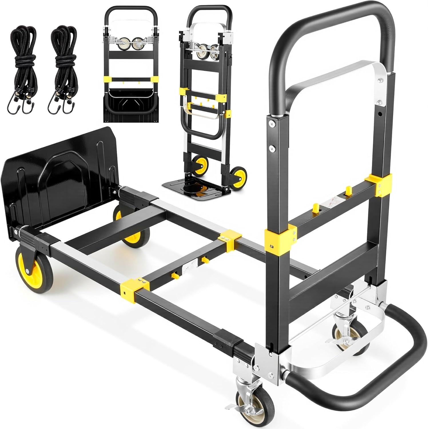 Convertible Purpose: This adaptable hand truck can quickly convert between a 2-Wheel Upright Hand Truck with a 220 lb capacity and a 4-Wheel Platform Cart that supports 600 lbs, all without any tools required. It's suitable for both regular and heavy-duty use!